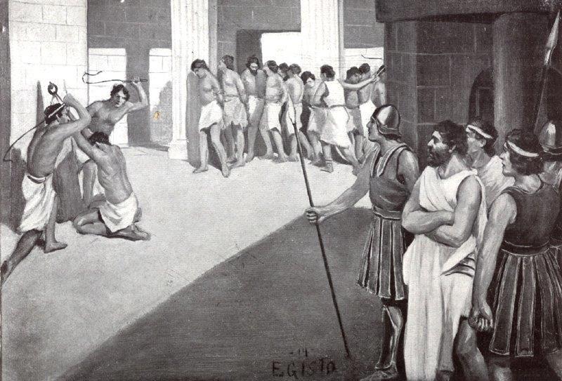 Нерадивых же рабов, медлительных и тех, кто пишет хуже некуда, огромный эфиоп-надсмотрщик безжалостно сечёт кнутом. А самым безнадёжным графоманам отрубают руки, чтобы они никогда больше не смогли писать. Многие литературные рабы не выдерживают жестоких экзекуций. Вместо них покупают новых: Ойкумена богата талантами! Пиши, раб, пиши - солнце ещё высоко!