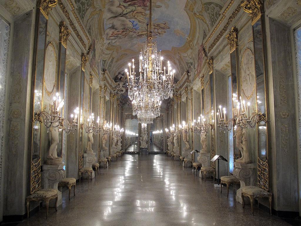 Зеркальная галерея Palazzo Reale в Генуе. Этот дворец был построен Стефано Бальби и его сыном Джованни Баттиста Бальби в 1643 — 1657 годах.