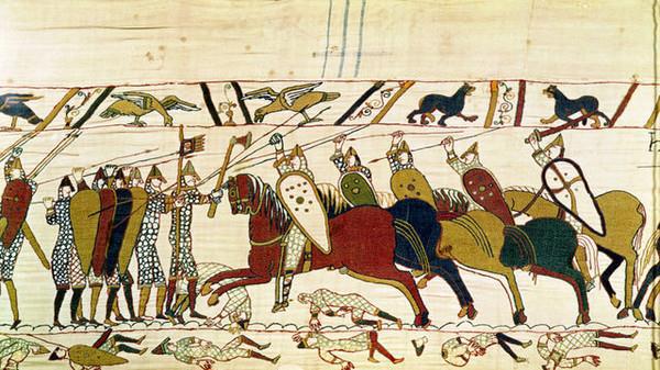 Гобелен из Байо. 11 век. Седла со стременами (событие 1066 года н э).