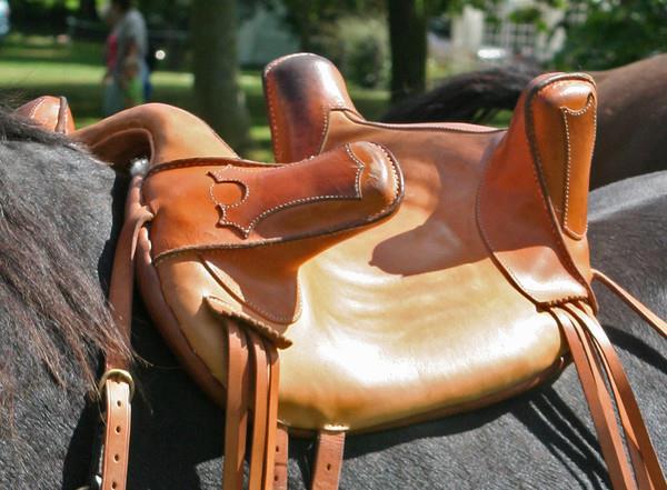 В ходу было римское "рогатое" седло без стремян. Собственно стремена и не требовались. Учитывая небольшой рост лошадей и довольно легкое защитное вооружение всадники свободно запрыгивали на коня с земли. "Рога" на задней луке обеспечивали надежный упор при ударе копьем на скаку, а в "рога" на передней луке упирались верхней частью бедра свешиваясь в бок при рубке мечом.