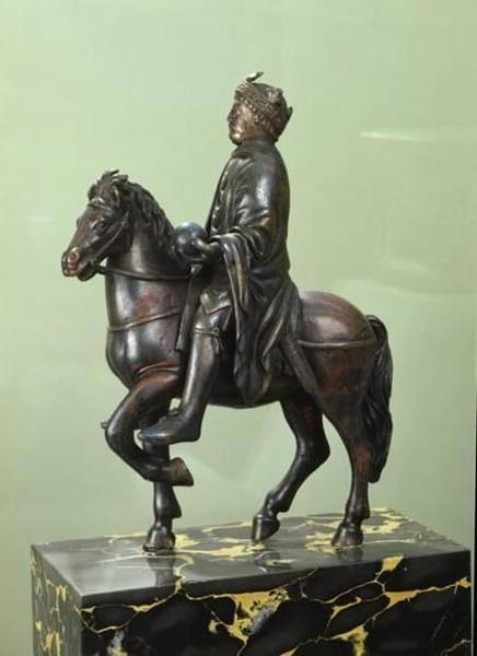 Карл Великий. 9 в н. э... Французский король сидит верхом на пони, очевидно на камаргу. Седло без стремян.