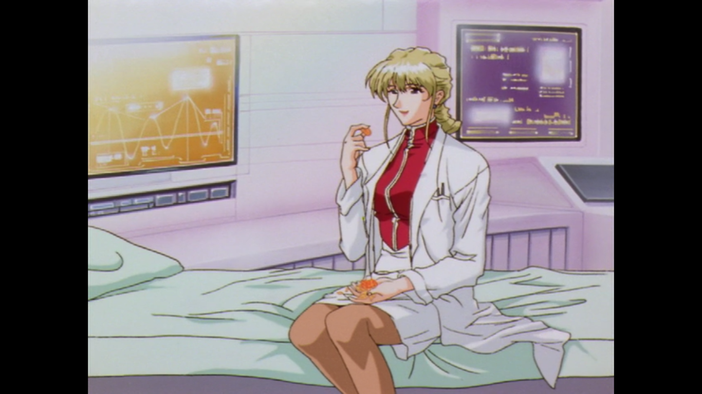 Если выделять что-то ещё, то я бы указал, что в "Надэсико" был обыгран мем о Моргане Фримене, способном объяснить всё на свете, задолго до мема о Моргане Фримене. Профессор Инес Фрессанж (роскошная женщина с которой связан один из интереснейших сюжетных поворотов, связывающих первую серию с последней) является автором всех мыслимых объяснений в сериале. Когда в одной из сцен другой персонаж пытается что-то объяснить, Инес возникает у него за спиной, отвешивает бедняге затрещину и прогоняет. Когда на корабле происходит что-то странное, экипаж сразу понимает, что с профессором что-то не так, потому что она сидит, ест апельсинку и не хочет объяснять происходящее!