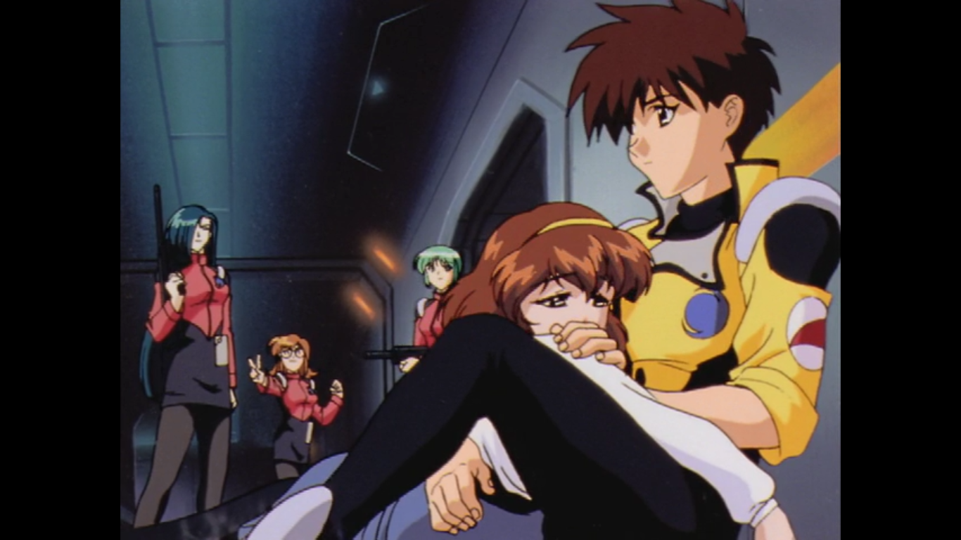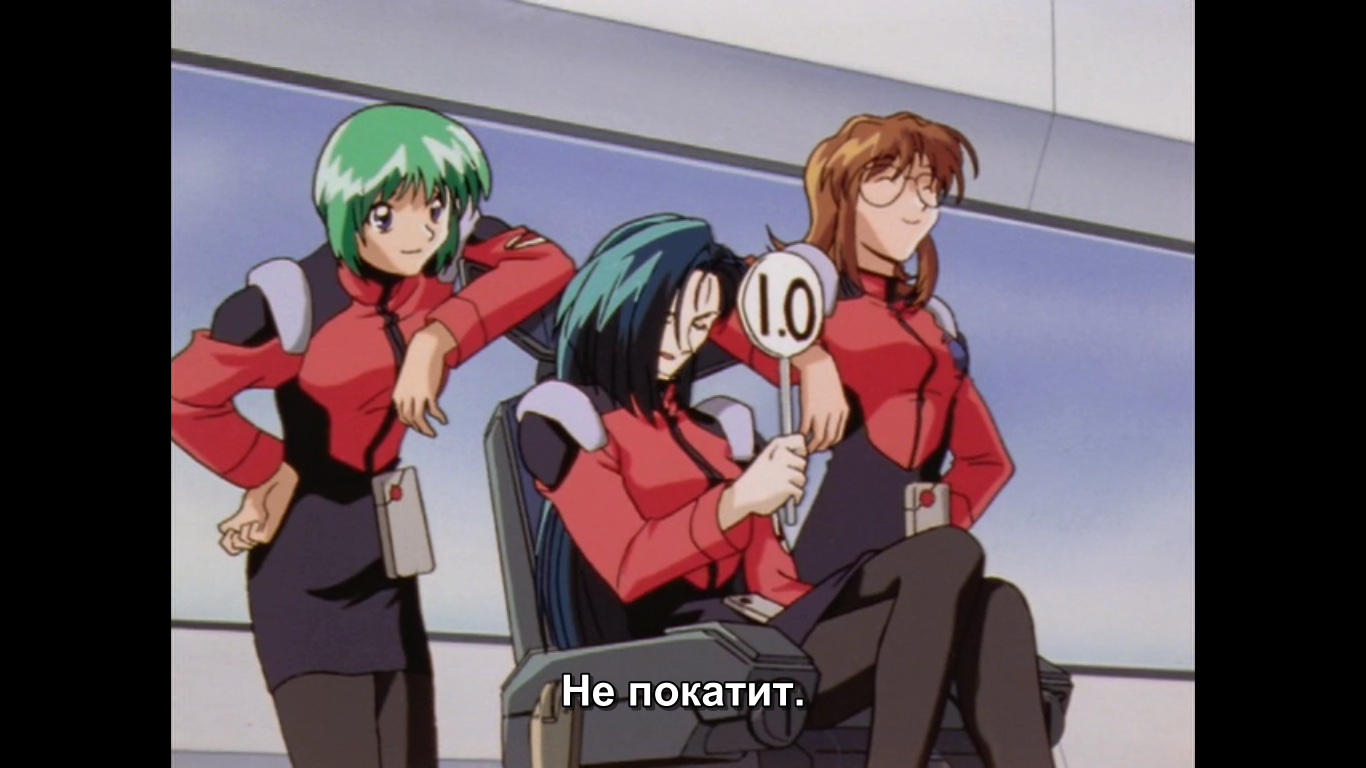 Моими персональными фаворитками так и остались три бравые лётчицы, пилотирующие штатные ОБЧР крейсера - крашеная в зелёный бой-девка Райко, рыжая отаку-меганекка Хикари и обладающая специфическим чувством юмора черноволосая Идзуми (с которой внезапно тоже будет серьёзный момент, объясняющий её эксцентричность так, что только обнять и плакать). Ломая очередной шаблон жанра меха, штатные пилоты на штатных же роботах тащат на себе весь экшен, не пропадая в тени Избранного-ГГ на крутом прототипе. Да и без роботов не раз проявляют крутизну.