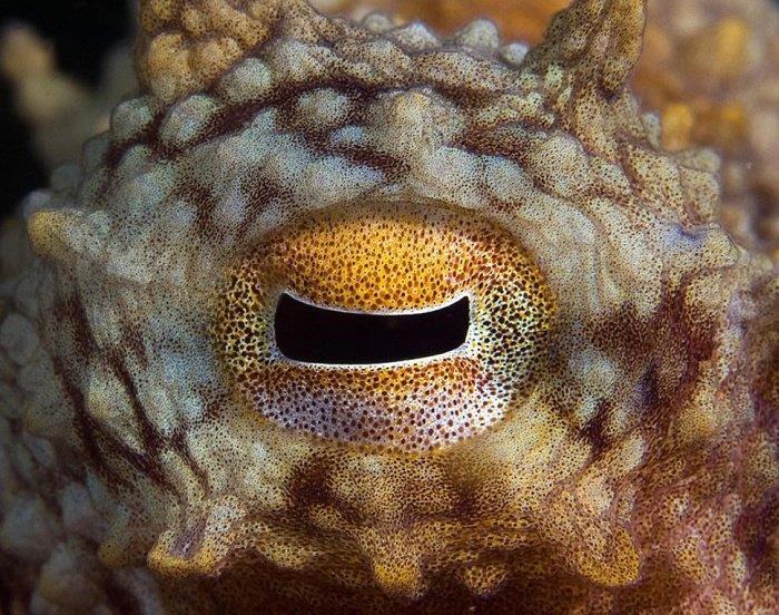 Автор: Октавия Колотилиначто мы, люди, ну просто совсем-совсем не родственники головоногим моллюскам – кальмарам, осьминогам или каракатицам, а вот глаз осьминога на глаз человека невероятно похож! То же самое отверстие зрачка. Та же светочувствительная «матрица» – сетчатка. Та же прозрачная роговица, защищающая глаз. Та же прозрачная фокусирующая линза – хрусталик.