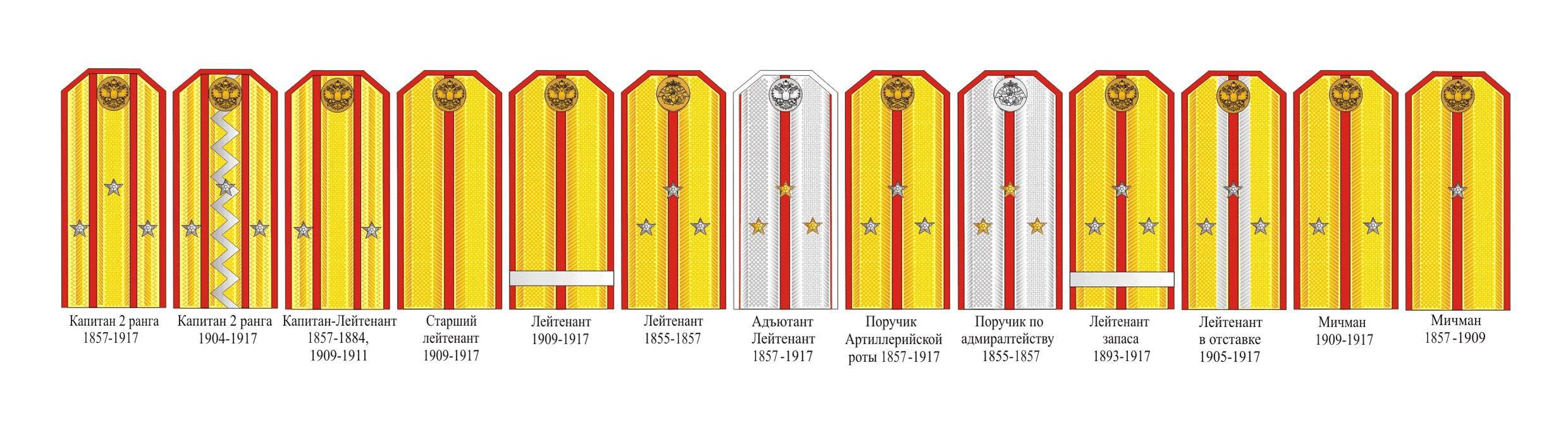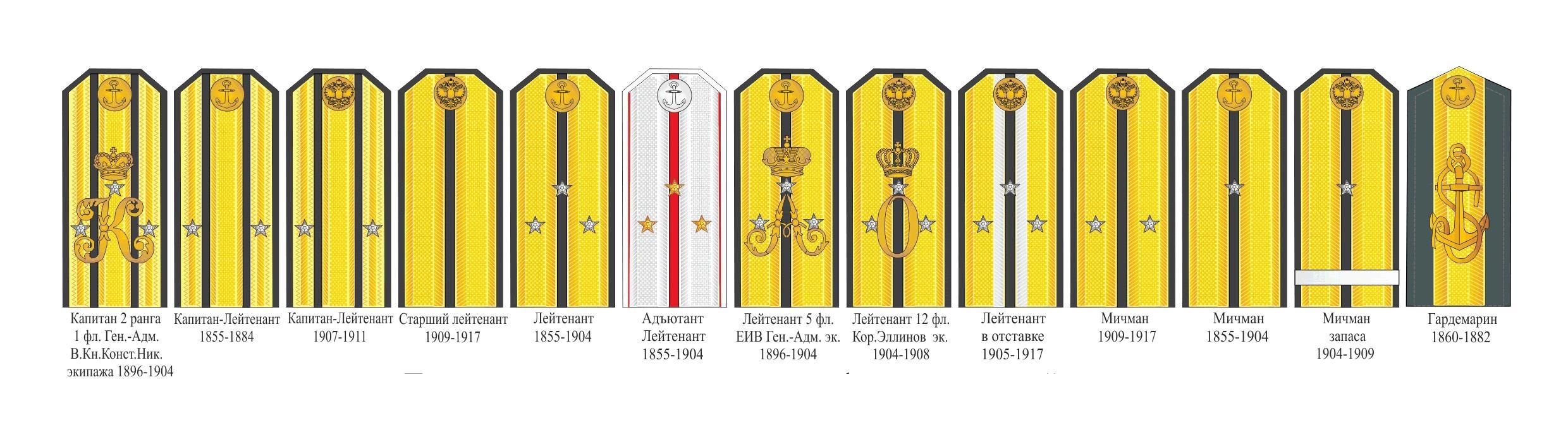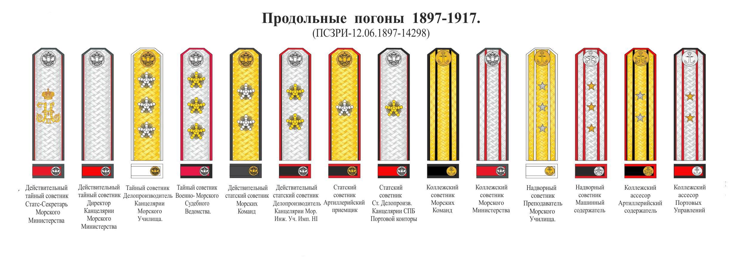 Продолжу воинской и гражданской иерархией, и званиями до 1917года. В них часто допускаются ошибки, и в званиях, и в описании погон, и в количестве звёздочек и полос.