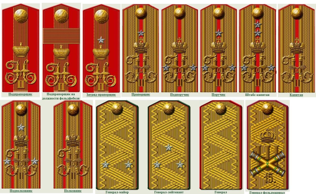 Было превеликое множество званий. Различные полки, имеющие своё самоназвание, могли иметь и свои погоны. Каждая военная служба тоже имела свои погоны и знаки отличия. Если вы хотите, чтобы я что-то ещё систематизировала и выделила отдельно, то пишите в комментариях. В следующей статье я расскажу о современных чинах в разных структурах и погоны стран мира.