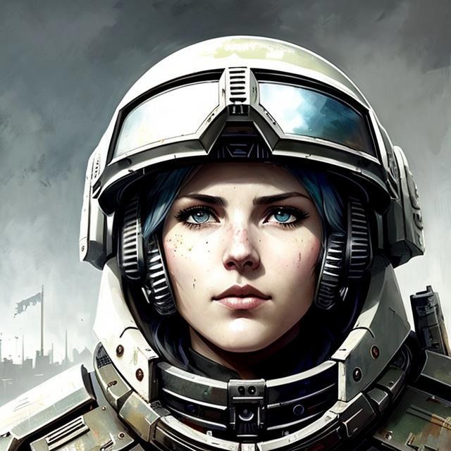Встречаем - анимешная голубоглазая космодесантница-лекарь в разных стилях в духе Halo и Вархаммера :)
