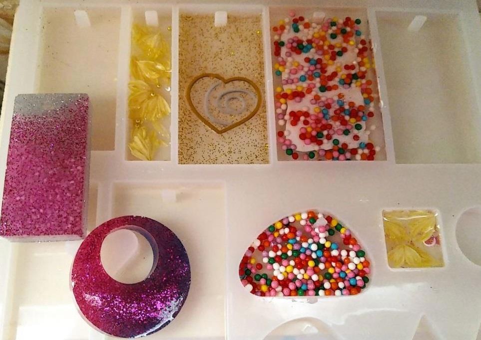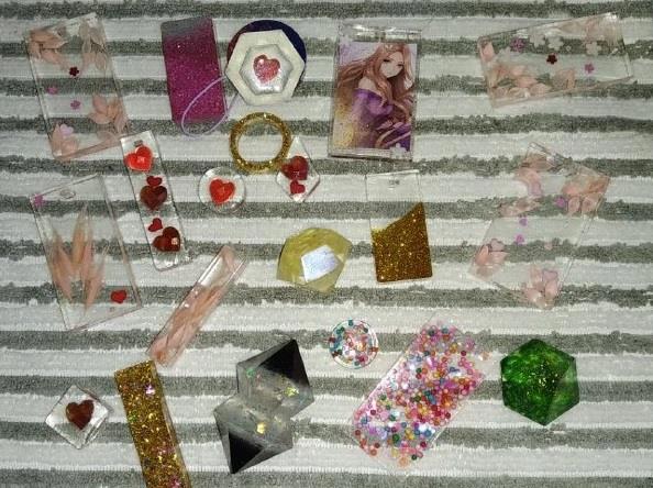 3. Продолжаем насилование эпоксидной смолы. Недавно купила особо густую смолу, в которой удобно например замешивать блестки (те не оседают), да и в целом густая мне больше понравилась пока что. Как только проклятая доставка привезет мне пигменты я займусь тренировками в замешивании разноцветных изделий.