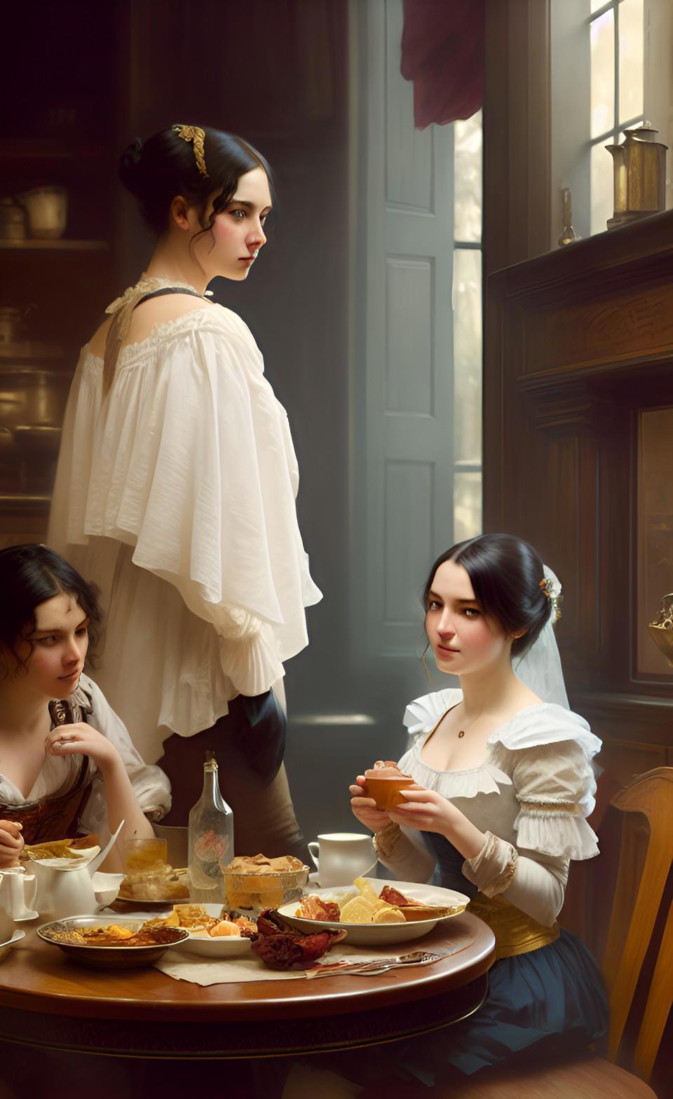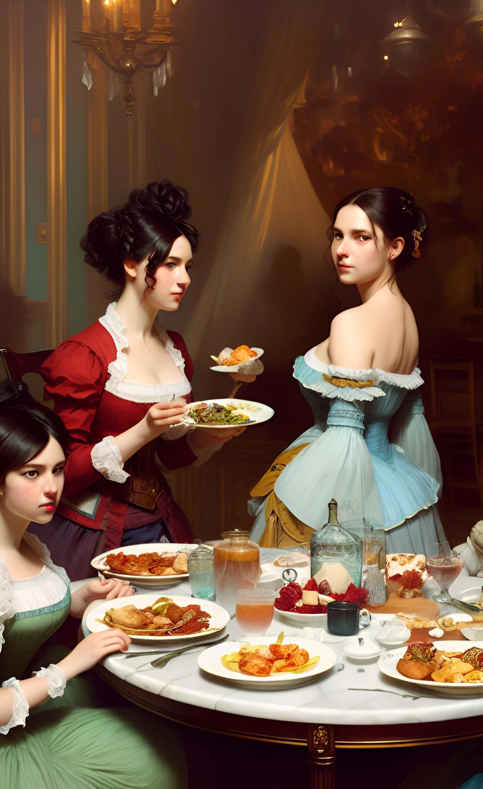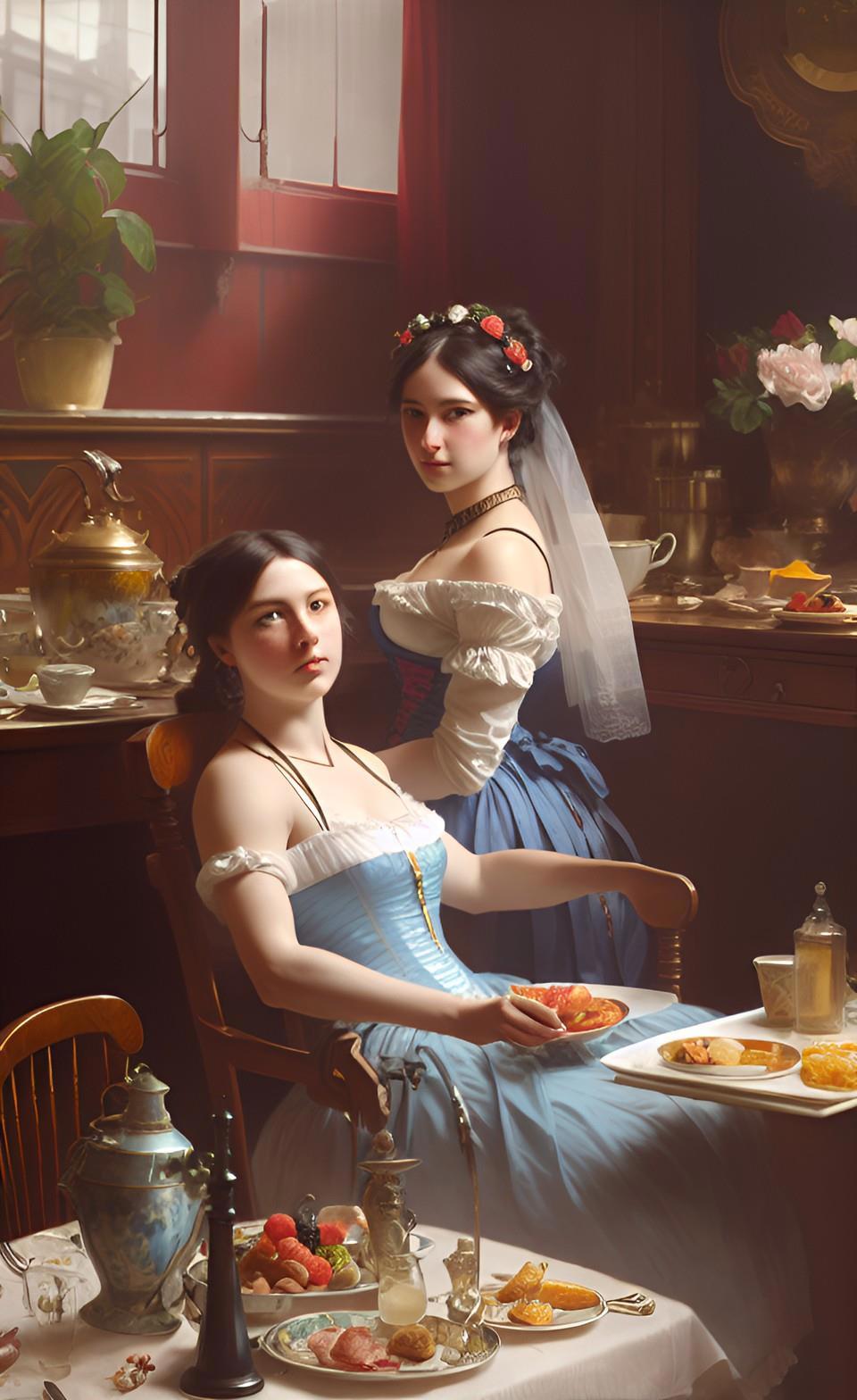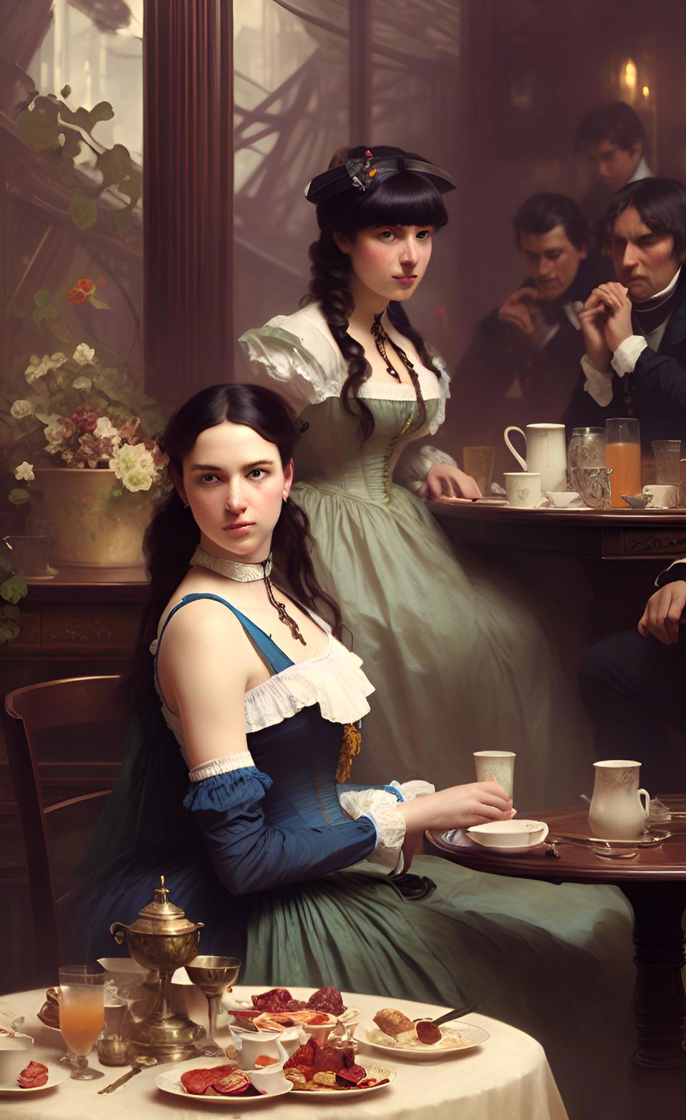 Собственно, именно воспоминания моего героя продиктовали мне запрос, который я ввел в мою любимую нейросеть WOMBO: "завтрак в борделе". А завтрак в борделе равносилен позднему ужину для всех остальных людей - это время отдыха от повседневных забот и отхода ко сну.