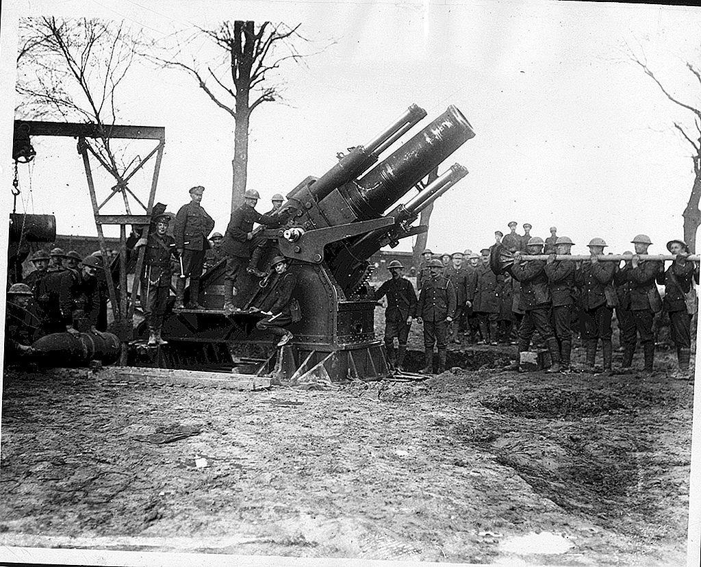 420 мм. мортира. Ее снаряды не могли взять перекрытие форта.