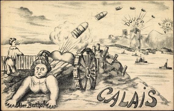 Еще более солдатский юмор. Берта из французского Кале попердывает в английский Дувр.
