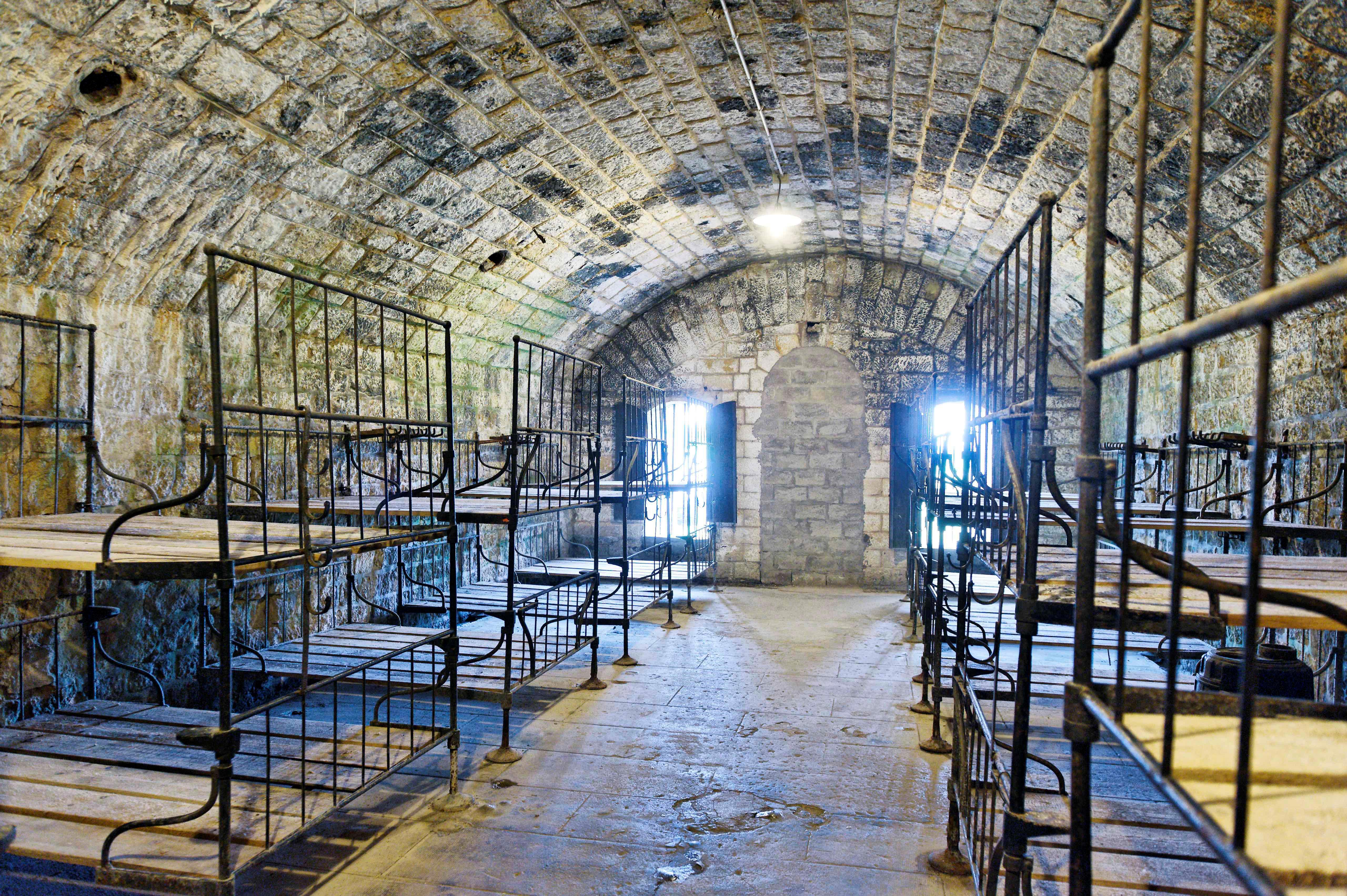 Казарма форта. Койки интересные. И похоже, что они на 4 человека, а не на двоих. а то и на 12...