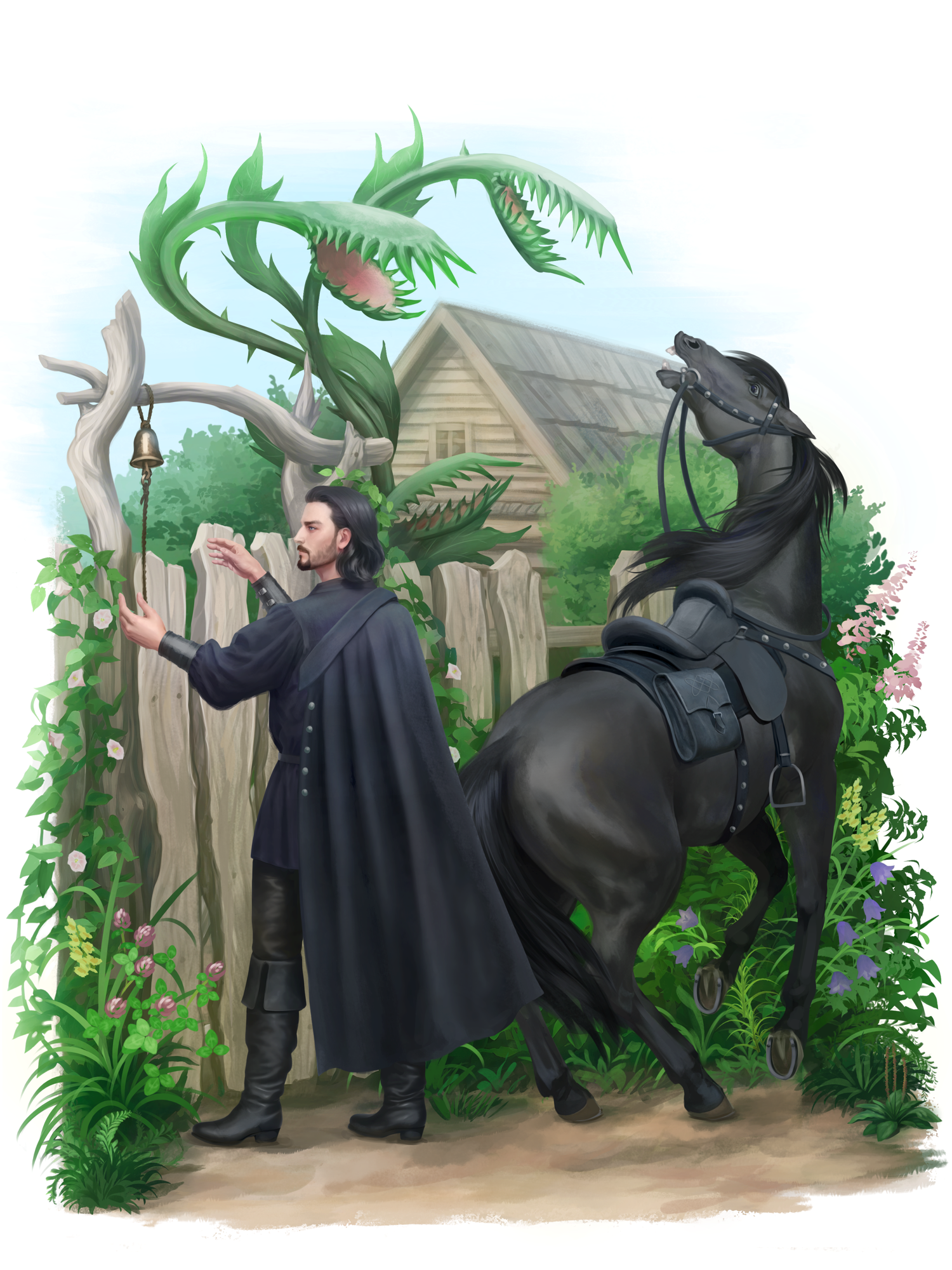 "Огородную ведьму" я читала в процессе, даже не зная и не мечтая о том, что буду к ней что-то рисовать. К моменту озвучивания ТЗ автор оказался слишком замотанным, чтобы его чётко сформулировать, а художник как увидел, так и развернулся с фантазией. В итоге сцену я малость приукрасила, но вроде, все остались довольны ;)
