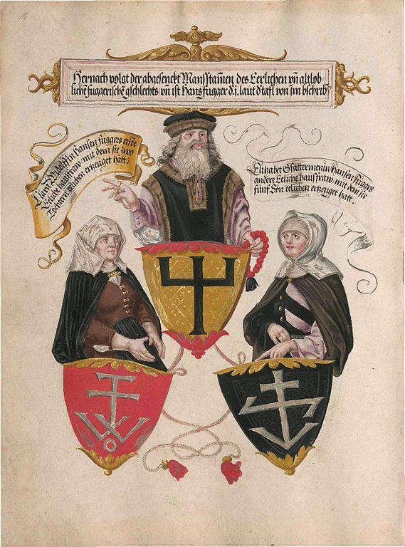 Ганс Фуггер из Аугсбурга и его жёны. Такими их представлял неизвестный художник в период между 1545 и 1549 годами.