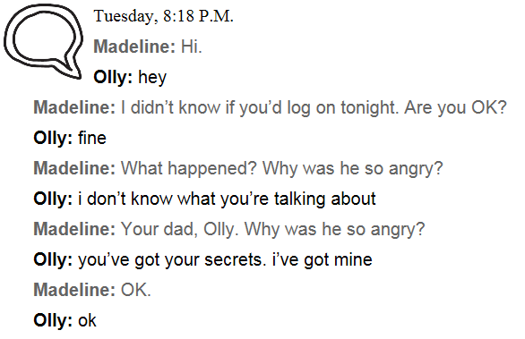А вот Nicola Yoon в книге Everything, Everything использует отдельное оформление: