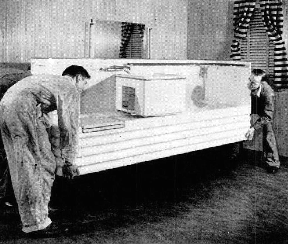 C A R B A N A - это хитрое название двухместной складной палатки, установленной на крыше автомобиля. Внутри находятся два надувных матраса. Мужчина справа - изобретатель Дон Каст.