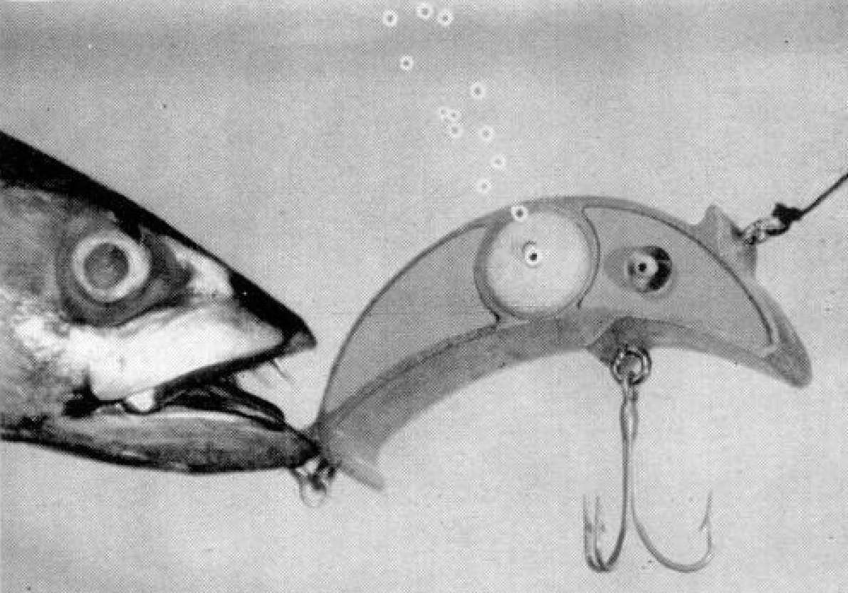 ПУЗЫРЯЩИЙСЯ ГОЛЬЯН привлекает рыбу, выпуская струю пузырьков из сменной капсулы с содой и кислотой, которая помещается в отверстие в корпусе.