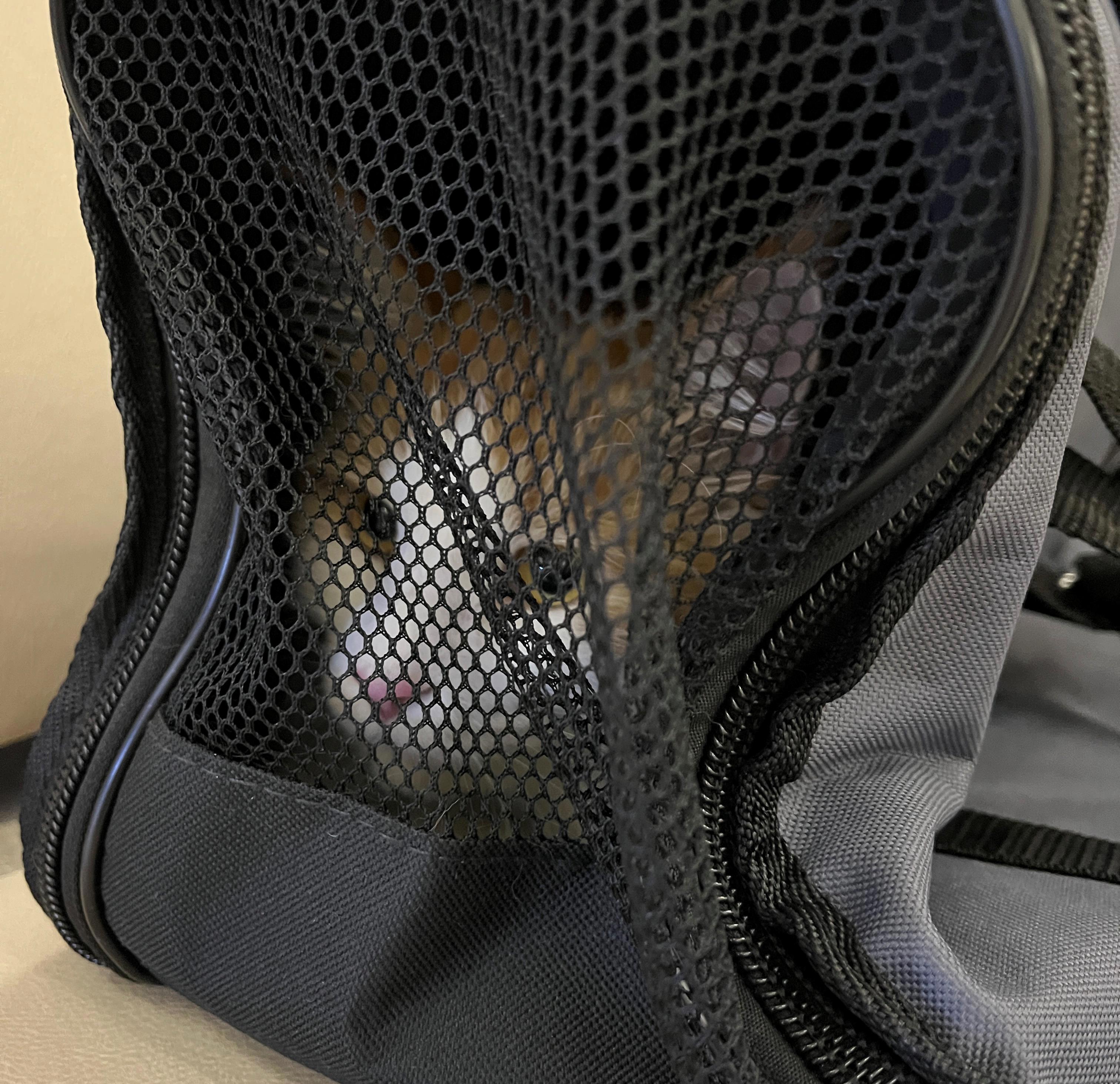 Кнопочка задумчиво ожидает посадки на международный рейс