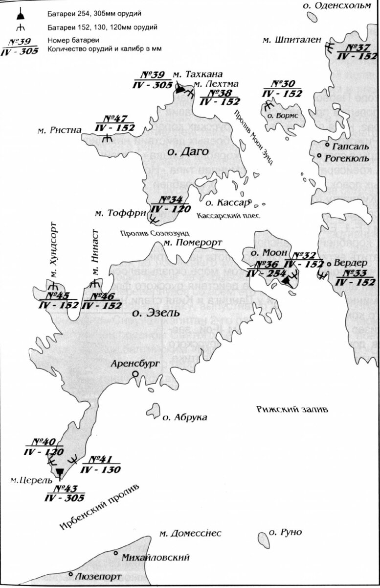 Армада должна обеспечить высадку десантов, прорвать оборону Ирбенского пролива, подавить сопротивление русских сил обороны Моонзунда и полностью захватить архипелаг. Противостоявшие им силы обороны водного района под командованием вице-адмирала М.К. Бахирева не отличались особой мощью. В основном это старые корабли. Флаг Михаил Коронатович держал на крейсере «Баян». Кроме этого в водном районе на конец сентября находились линкоры «Слава» и «Цесаревич», крейсера «Россия», «Громобой», «Аврора», «Диана» и «Олег», около двух дюжин эсминцев, из которых только два дивизиона нефтяные. Наличествовали три канонерские лодки, четыре минзага. В сентябре перед самым началом операции в Аренсбург и стоянки на островах архипелага перевели два дивизиона подлодок. На аэродромах расположились 70 самолетов. Спешно велись работы на береговых батареях.