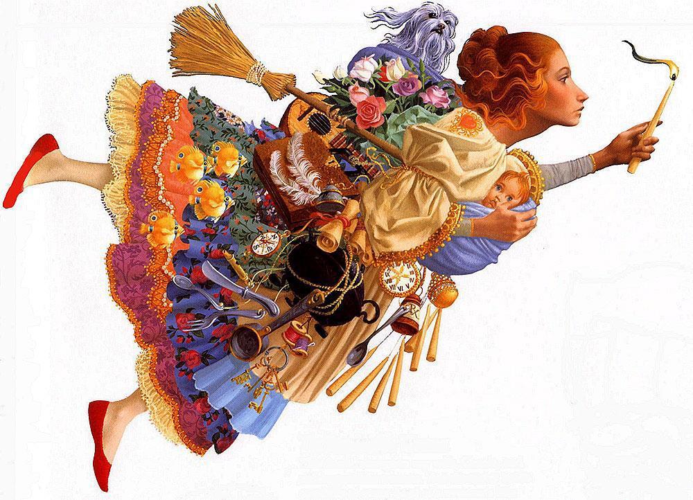 Вот она, вся из себя, с детенышами, вениками-поварешками, красивыми платьями, цветочками-кружевами, кучей эмоций в душе и тараканов в голове, стремительная и легкомысленная, святая и сложная, великая и назаменимая, летящая навстречу кому? чему? Но точно с верой, надеждой. И любовью? Да, куда без нее)