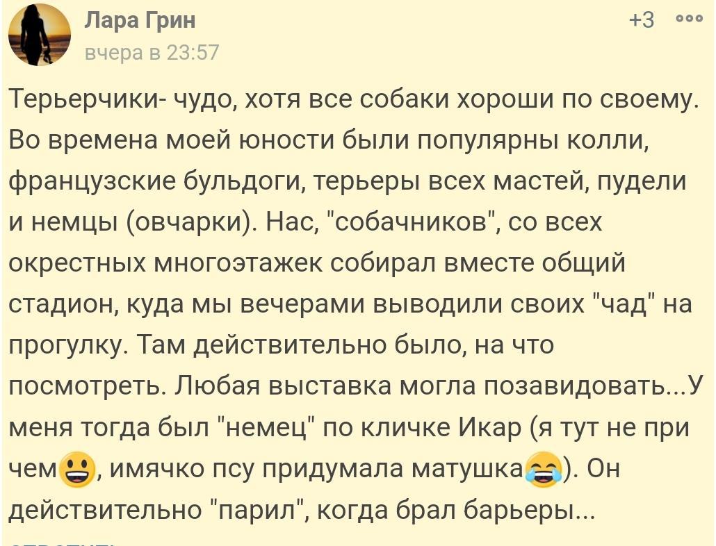 Собаки тоже были в моем детстве, но почему-то не оставили сильного следа, хотя я их всех помню. Абсолютно всех, что были у нас.