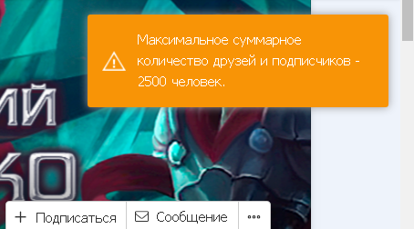 Автор: ДмитрийНе могу подписаться... выдаёт ошибку... мол максимальное количество друзей и подписчиков пять тысяч (у меня уже пять тысяч). То есть раньше не мешало... Кто сталкивался поясните плиз. Я понимаю друзья + мои подписки = 2500, но тут пишут друзья и подписчики.