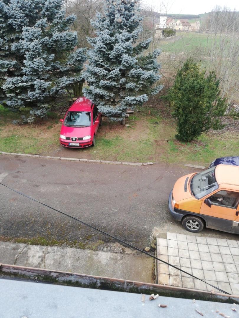 красненькая приютская машинка(я фотографирую из своей комнаты над кухней)![]() | Будку затолкали в наш рыжий транспортер и Луцка готовится отъезжать, а приютская дева прощается с Мартином рукопожиманием, (что, к слову, часто травмирует в Чехии русскоговорящих дам)![]() |