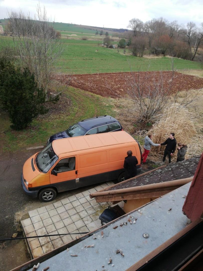Поэтому пришлось Луцке заводить наш рыжий транспортёр и транспортировать будку в приют. Потому что возможность, что приедет проверка из Праги гораздо ниже, чем из несколько более близких Тушимиц, где Мартинова электростанция...