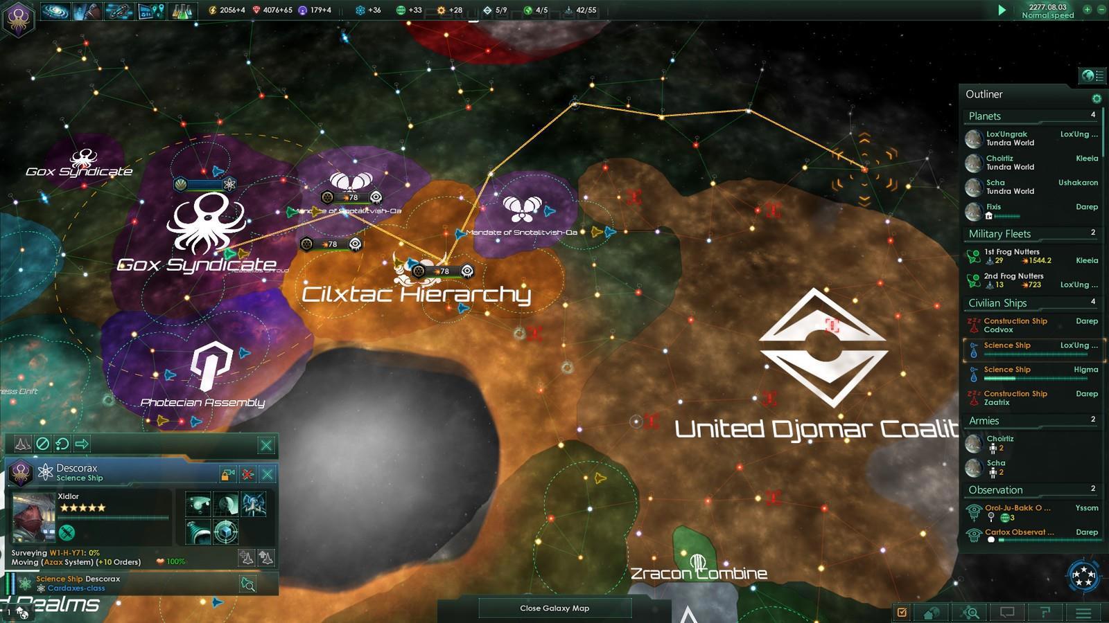 Заслуженный статус убийца времени и реальной жизни интеллектуальной элиты с 2016 года. Игра была настолько восторженно принята общественностью, что Paradox'ы до сих пор стабильно раз в полгода клепают обновления, переворачивающие весь баланс, тактику и экономику с ног на голову, заставляя игроков заново изучать игру. Заявленный изначально жанр космическая 4Х-глобальной стратегии эволюционировал в нечто большее - гигантскую машину с экономикой и квестами, в котором итог партии космической войны свелся к молниеносному сражению за несколько минут после суток подготовки. Но сам процесс изучения галактики в случайном наборе событий - это нечто восхитительное, несмотря на то, что разрабы сплагиатили все, что только можно было стырить из различных игровых вселенных. Но сделали это красиво, так что плеваться и не хочется. Жирным минусом является отсутствие микроконтроля управления боевыми подразделениями. Достойный кандидат, пришедший на замену Закату Солнечной Империи, с бонусом в виде галактического кризиса в каждой разыгрываемой партии.