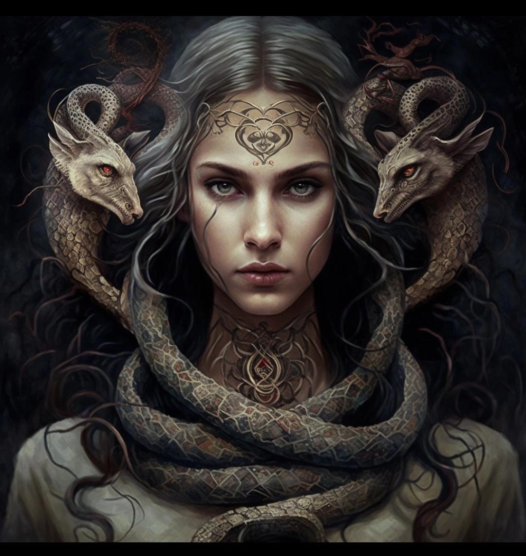 Очень стало интересно как должна выглядеть Спутница Змея Горыныча... Нейросеть предложила мне такие варианты.