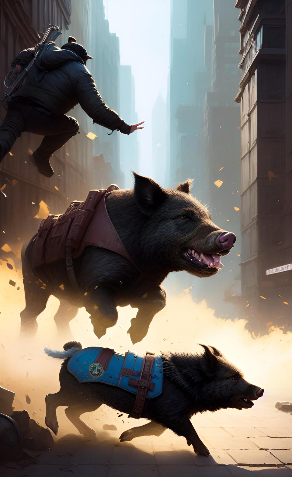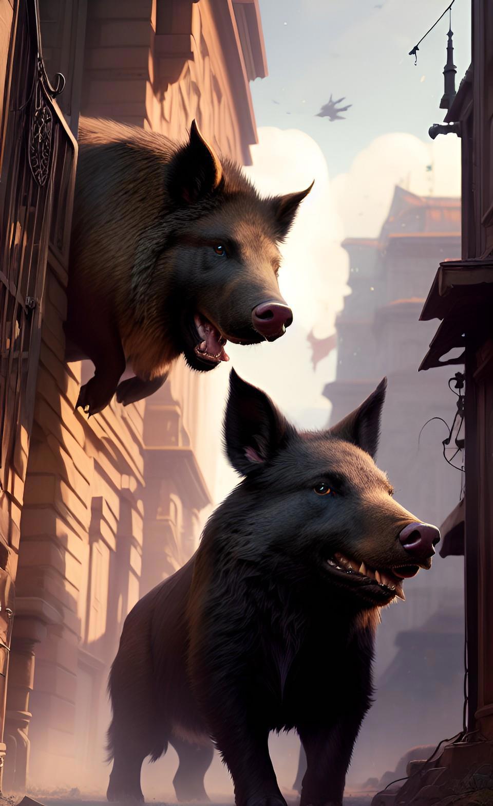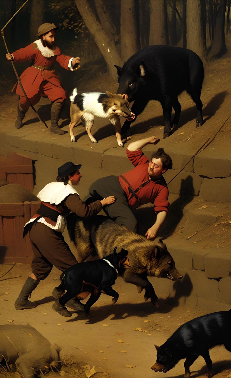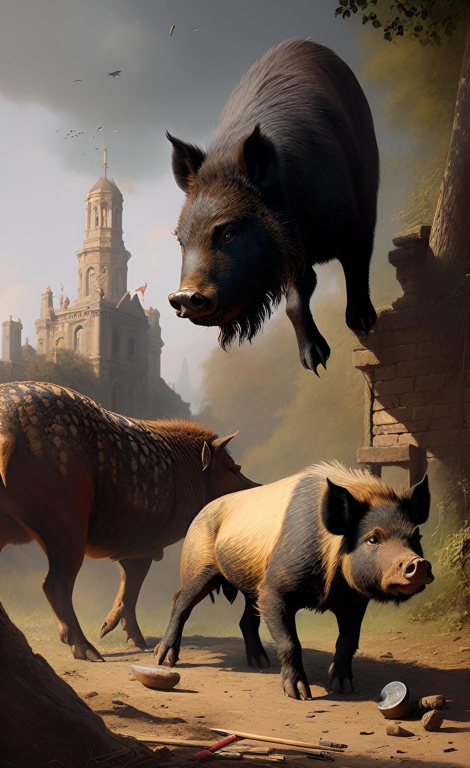 Так, например, мне понадобилась иллюстрация к последней главе моей книги. Речь шла об охоте на кабанов. Но вместо охоты на кабанов WOMBO сделала мне охоту на трюфеля. Кабанов она, конечно, делает странных, свинособаки какие-то, но уже что имеем.
