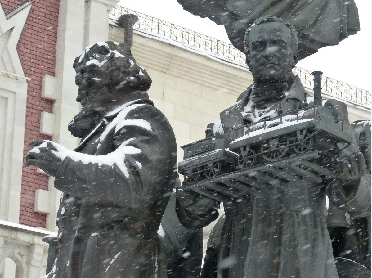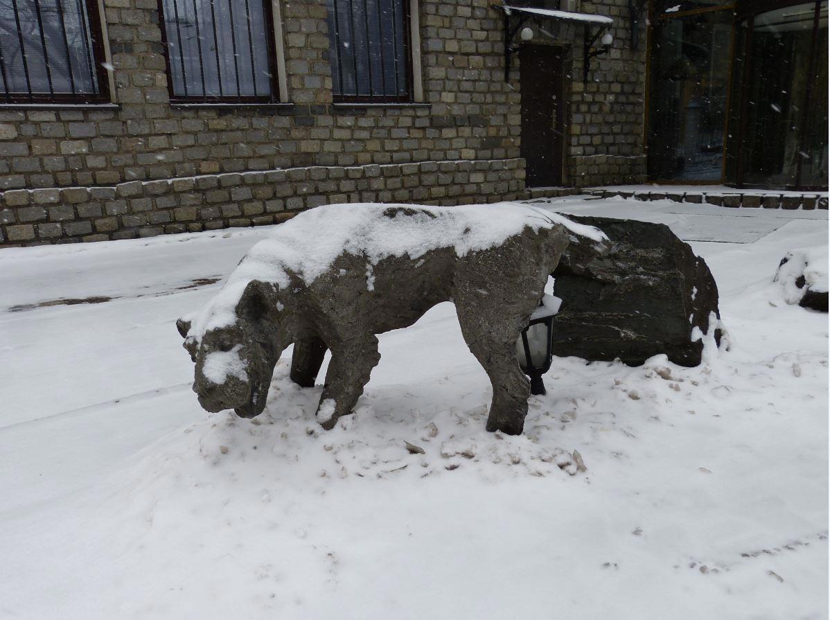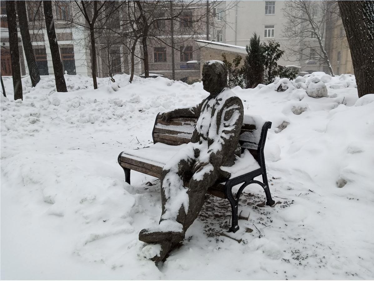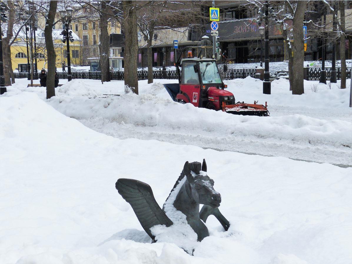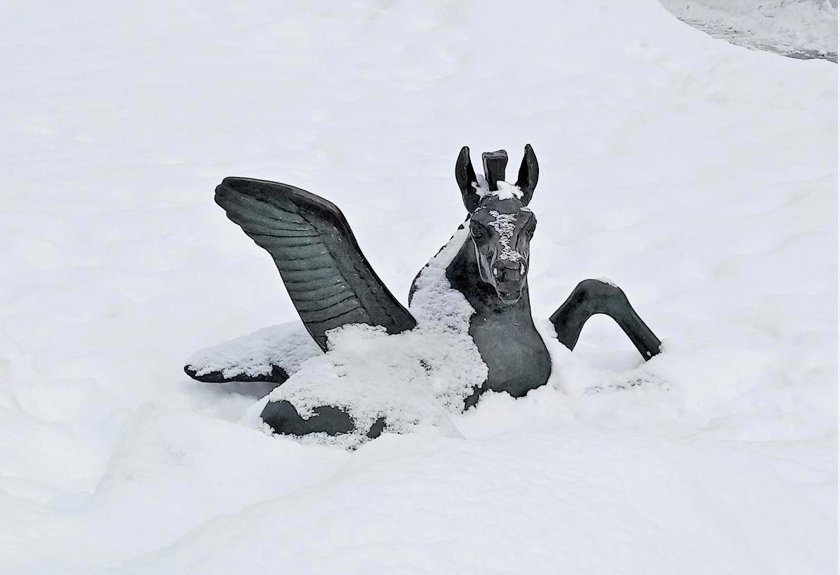 Крошка Пегасик возле памятника Есенину так и вовсе почти утонул в снегу.