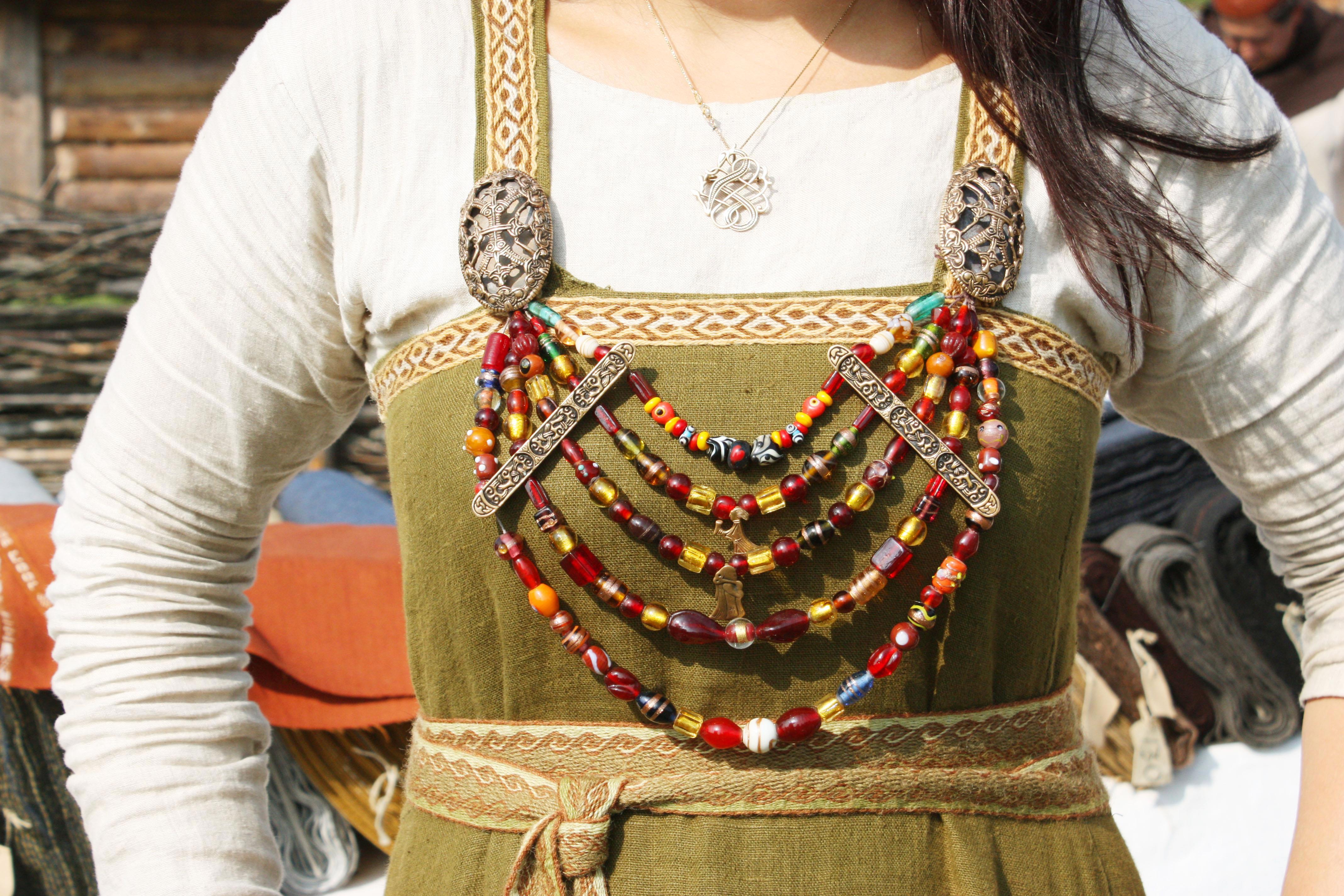 Использовались они чаще всего для того, чтобы скреплять лямки хангерока (это такой своеобразный фартук-сарафан). К этим фибулам часто прикреплялись нитки бус (осорбый шик — цветное стекло, а также янтарь, полудрагоценные камни), на цепочках могли подвешиваться разные полезные в хозхяйстве мелкие предметы.