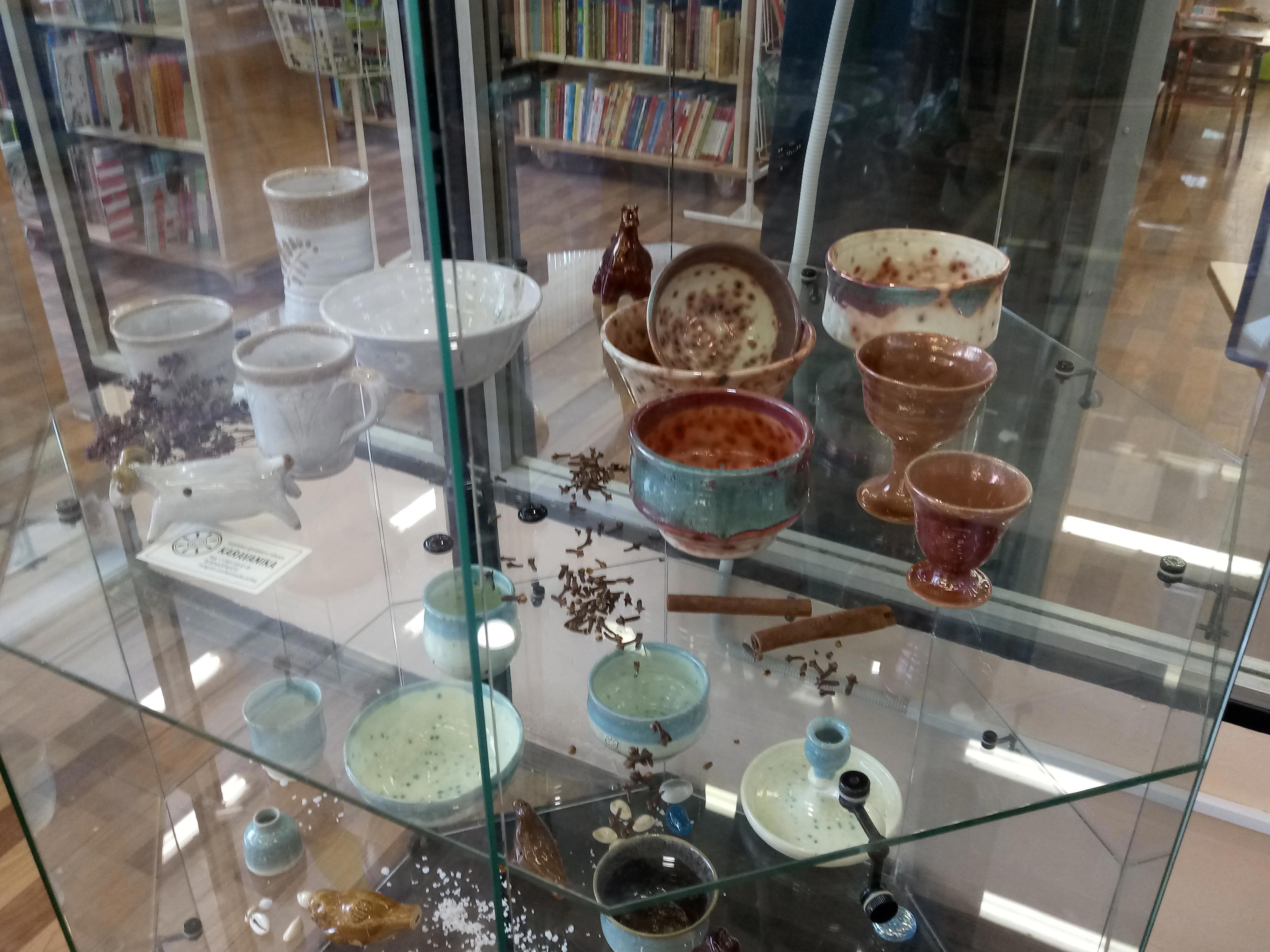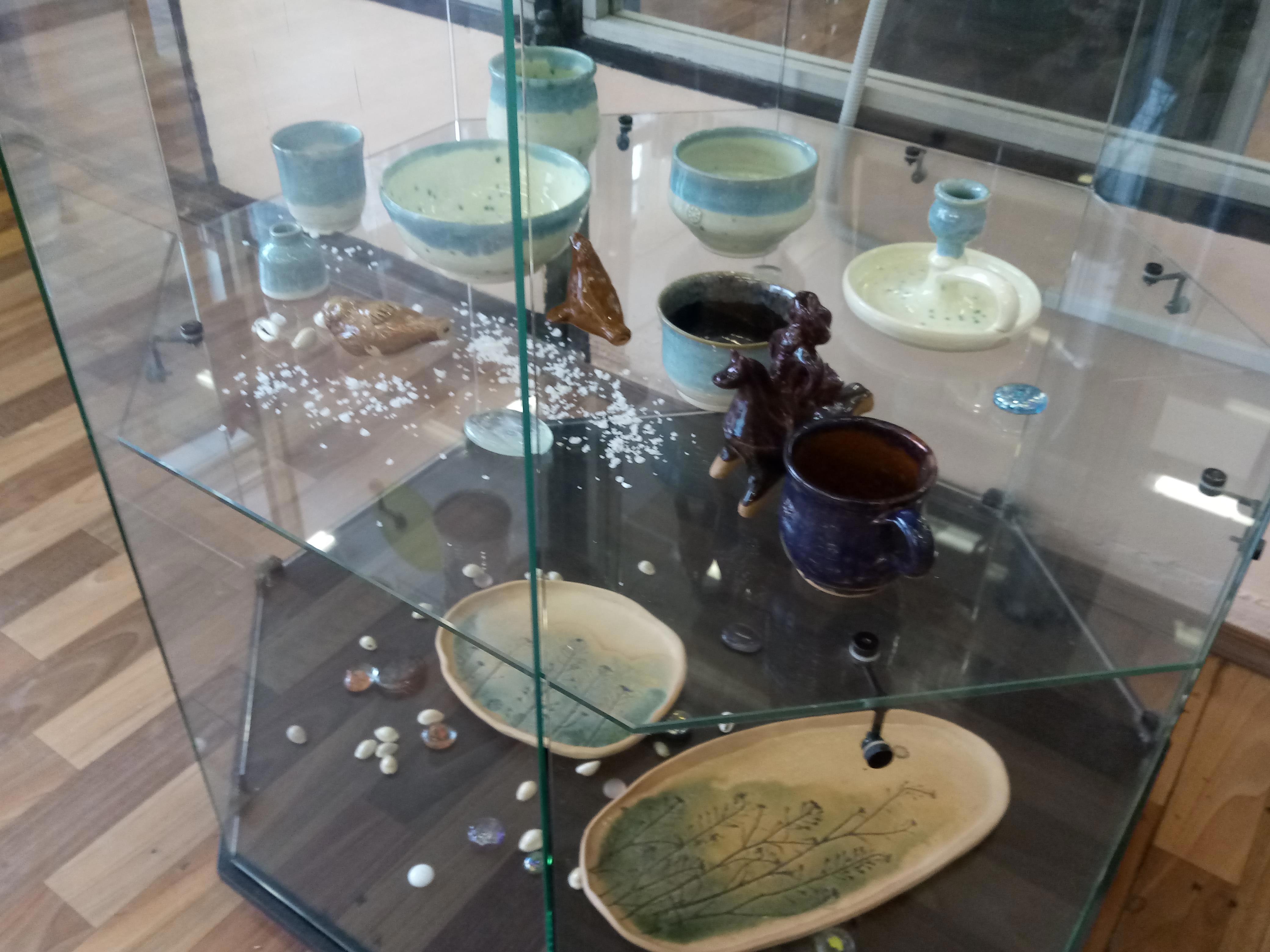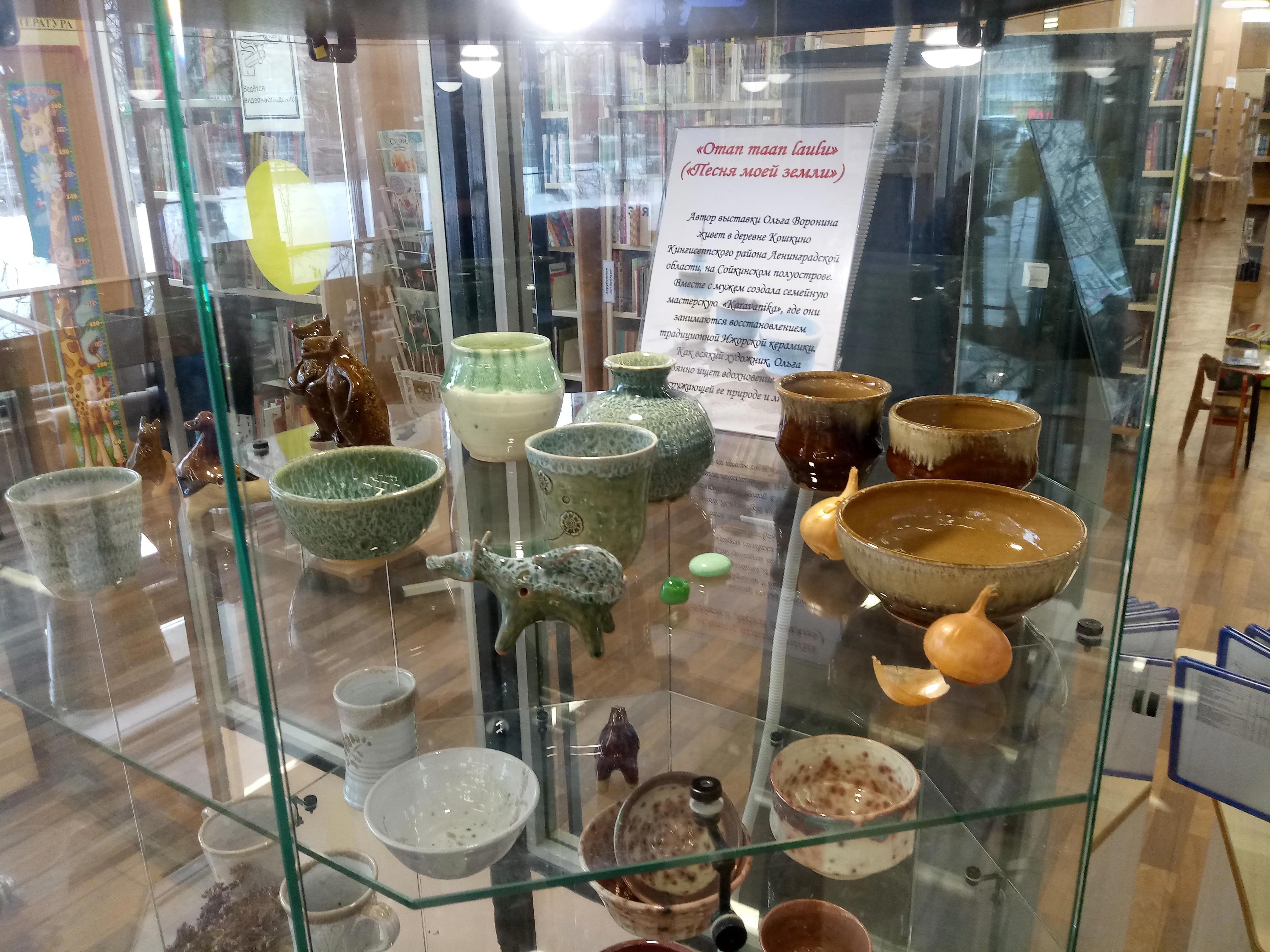 Выставка ижорской керамики "Песня моей земли", созданная художником Ольгой Ворониной, руководителем мастерской в деревне Кошкино Кингисеппского района. В современных изделиях отражены старые традиции гончарного мастерства.