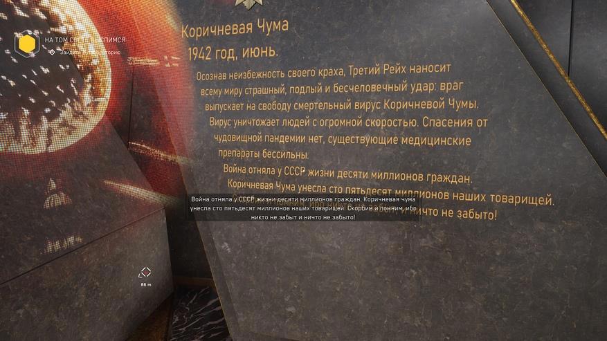 В итоге мы имеем утопичный мир глубоко травмированный пандемией чумы, где каждая семья СССР понесла страшные потери среди большинства своих родственников. Скорее всего, после такого потрясения люди стали намного ближе друг другу и на какое-то время в обществе полностью пропала агрессия и насилие снизилось до минимальных значений. Все выжившие стали друг другу товарищами, опорой и поддержкой, одной большой семьёй, вместе переживая утрату близких и стремясь оттолкнувшись от трагедии открыть новую страницу будущего человечества. Встреченные по ходу игры люди проявляют себя радушными, душевными и ответственными гражданами, даже за гранью смерти верными работе и Родине, личные шкурные интересы встречаются скорее в виде аномалии, хотя многое указывает, что расслоение общества на блатных и простых сохранилось даже в таких уникальных условиях, когда людей осталось столь мало, что казалось бы уже нечего делить.