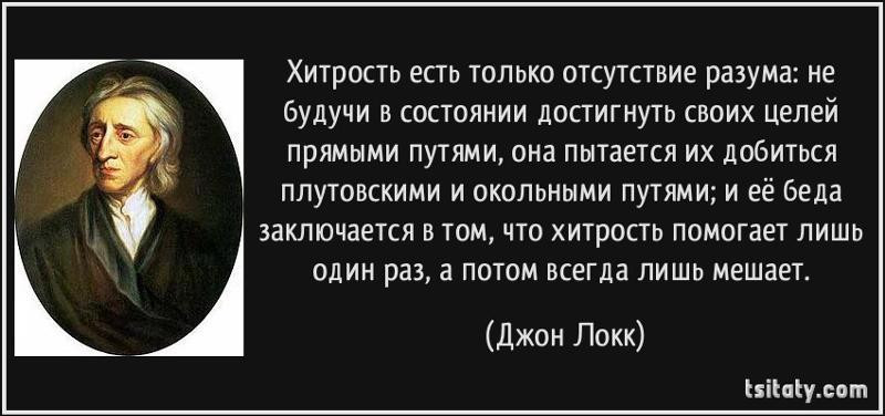 Впрочем, в качестве достоинства хитрость можно назвать военной, за редким исключением хитрость может называться благой, если речь идёт о спасении чьей-то жизни. В остальных случаях хитрости нет оправдания. Жизненные примеры показывают, что человек, который постоянно хитрит и учит этому своего ближнего вступает в вязкое болото обмана. Рано или поздно он перехитрит самого себя, но перед этим наделает много зла. Самое обидное, что он может не заметить даже, как это зло вырастает по его вине колючим терновником: обида за обидой, беда за бедой...все будет списано на обстоятельства,тогда как только эти обстоятельства явятся уже следствием его искусно раскиданных сетей: недомолвок, утаивания, лжи и прочей мерзости. Впрочем, можно долго рассуждать на эту тему, а вместо того - послушаем, что говорили об этом умные люди.