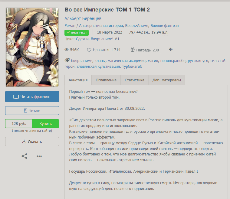 Русский язык уже свернулся, да и империя несколько напряглась от таких проходов в исполнении антЕпопаданца.