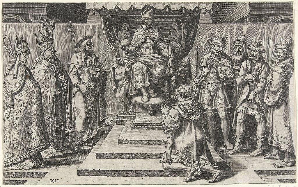 Гравюра по рисунку Мартена ван Хемскерка. Филипп Гессенский предстаёт перед императором Карлом V. 1556 год.