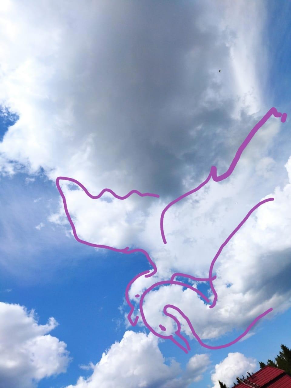 Сегодня мне снилось лето. Наверное, потому что в последние дни всё активно тает, с крыши не капает, а льёт. И мне снился июль. А утром гугл.фото вдруг выдало "лучшие моменты". И среди них так любимые мной июльские облака. Есть у меня тема - фоткаю облако, а потом рисую по нему, что вижу.