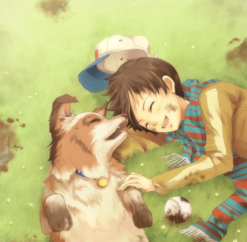 Пускай сегодня будут люди, с друзьями нашими меньшими (ну или большими, как художник захотел)