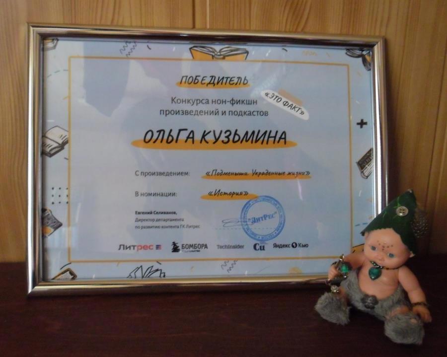 2. Победа на конкурсе "Это факт!" в номинации "История" (ЛитРес) с научно-популярной книгой "Подменыши. Украденные жизни".