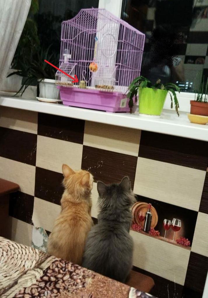 А один из попугайчиков уже обрёл новую семью. Там тоже есть пушистые ребята, и они ему очень рады. Смотрят вместо телевизора. Глядят не налюбуются