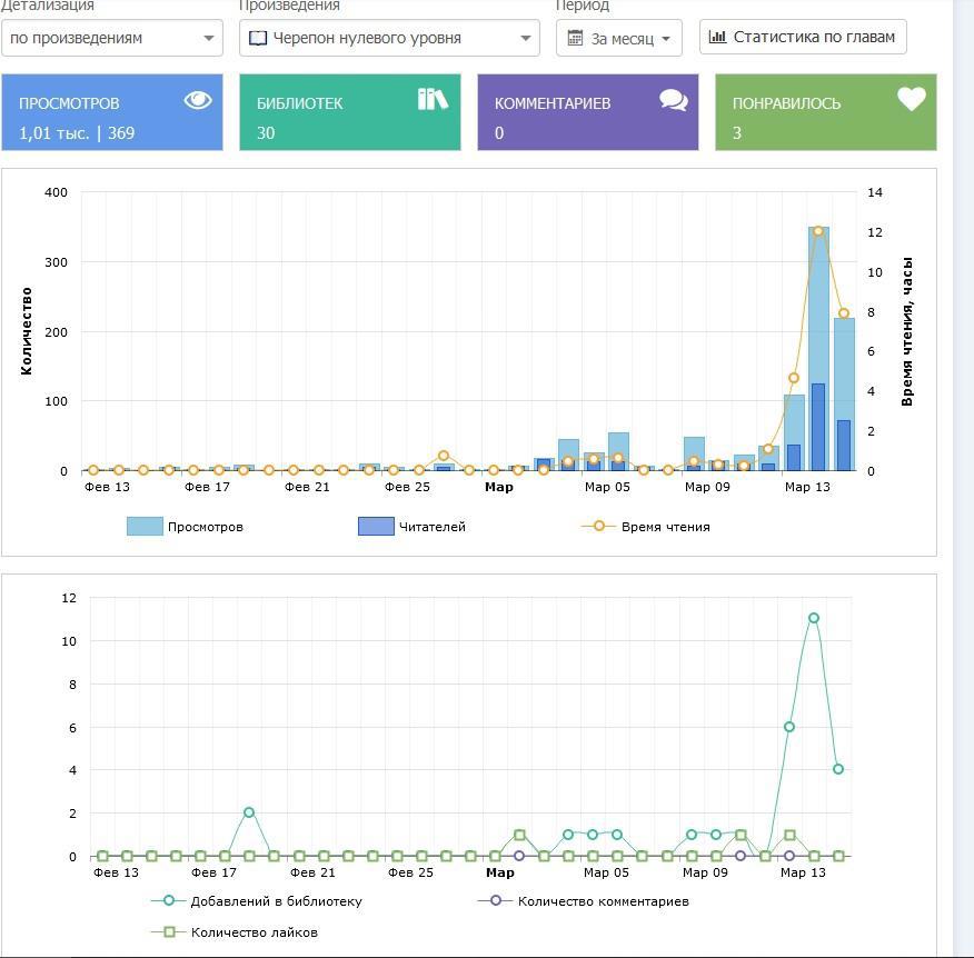 Реклама в ЯД вышла намного успешнее. По крайней мере я не вижу адовой цены в 19р на клик, как у вк. Хотя вот снова выяснил, после общения с авторами, что в вк цена на клик выходит никак не 19р - это просто я криво что-то настроил. Кстати, после вчерашнего поста мне написал автор с просьбой настроить ему рекламу в ЯД. Интересно, что выйдет.