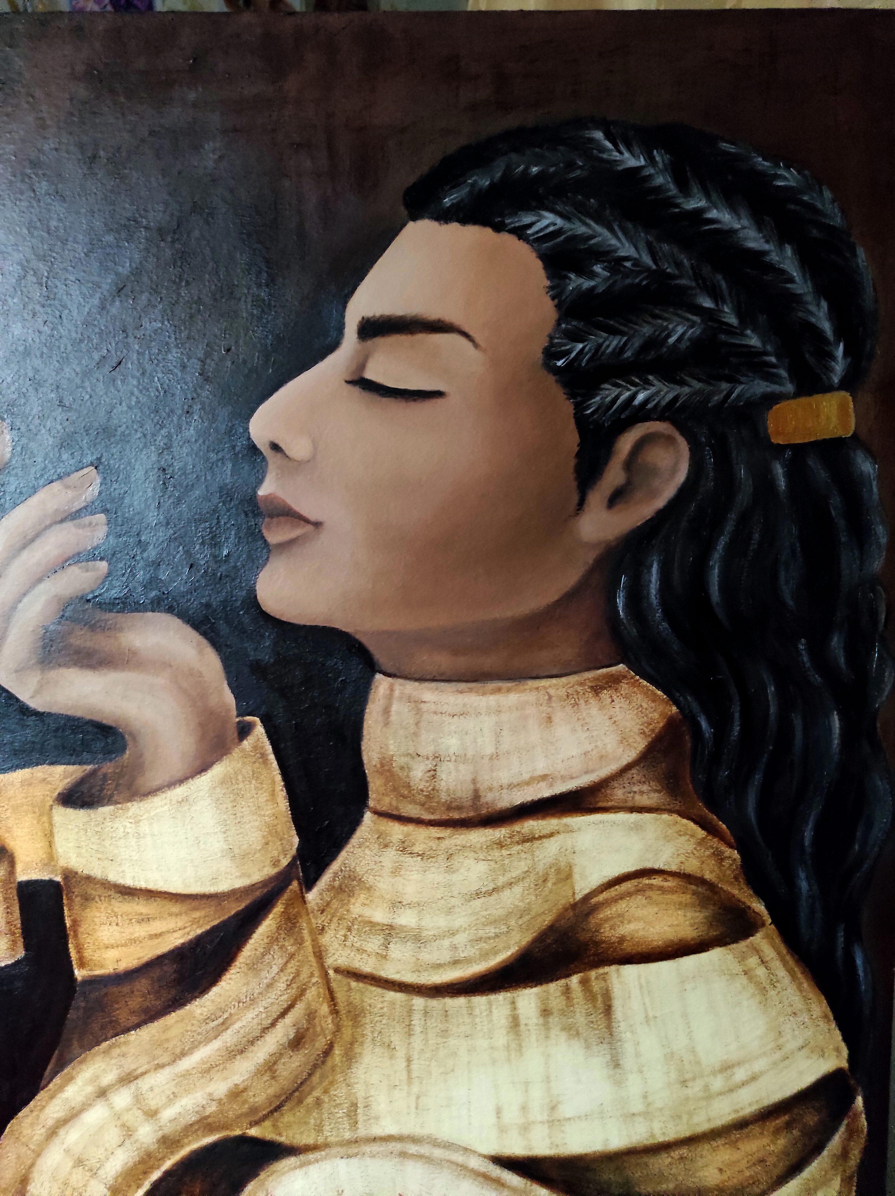 Грунтованный картон, масло, 50х70 см. Фрагмент. Без цветовой корректировки.