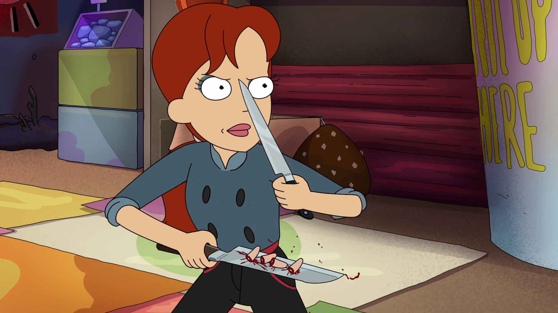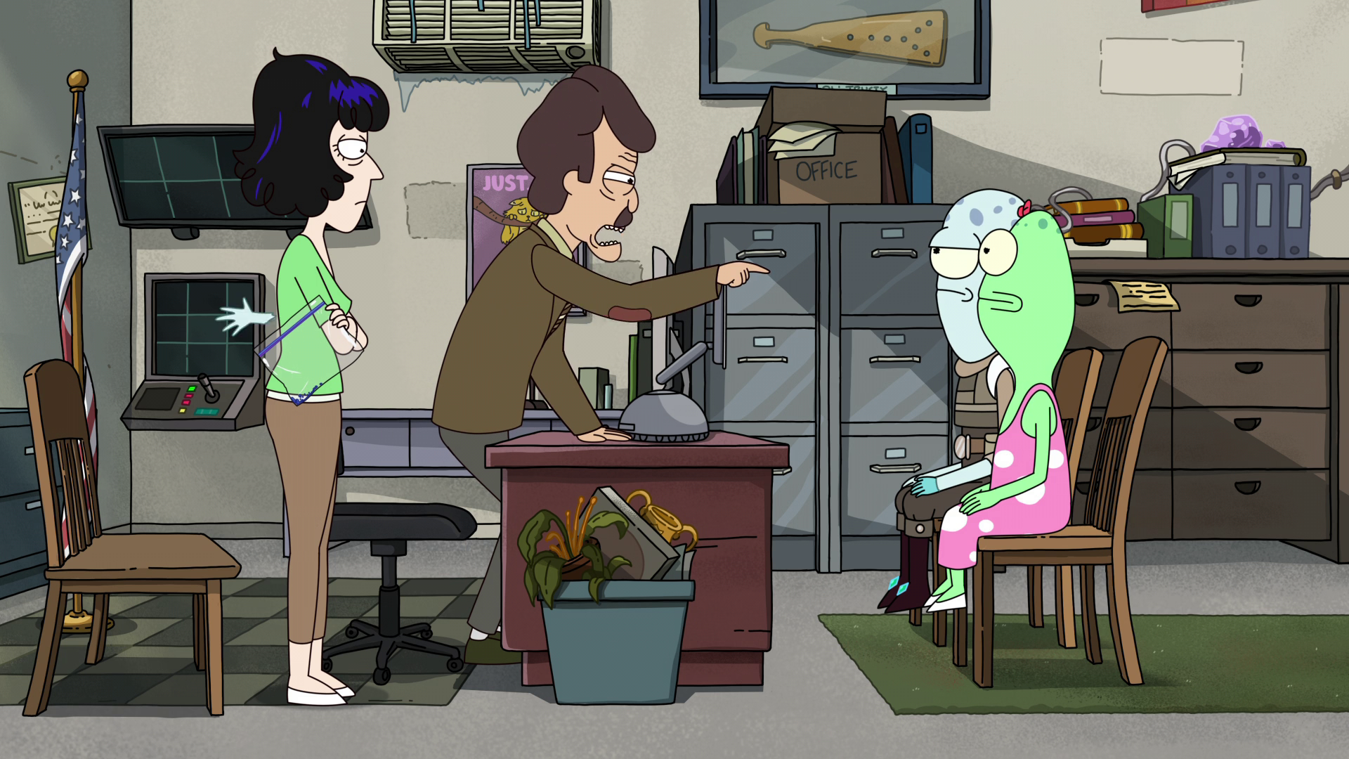 Похотливая дама, работающая учительницей истории в школе и дополнительно подрабатывающая еще в нескольких местах. Терпеть не может инопланетян, однако, в одной из серий, Корво 8 раз довел её до оргазма, делая кунилингус. Регулярно сношается с мистером Дряблочленом в директорском кабинете, в школе. Сильно возбуждается каждый раз, когда директор Дряблочлен наказывает учеников.