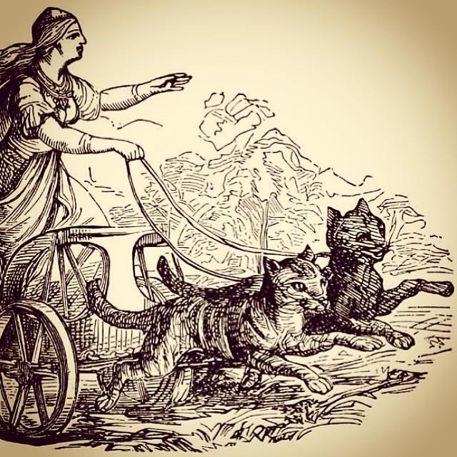 И да, в одном из скандинавских мифов колесницу с богиней любви, войны и ещё много чего Фрейей возили большие коты.