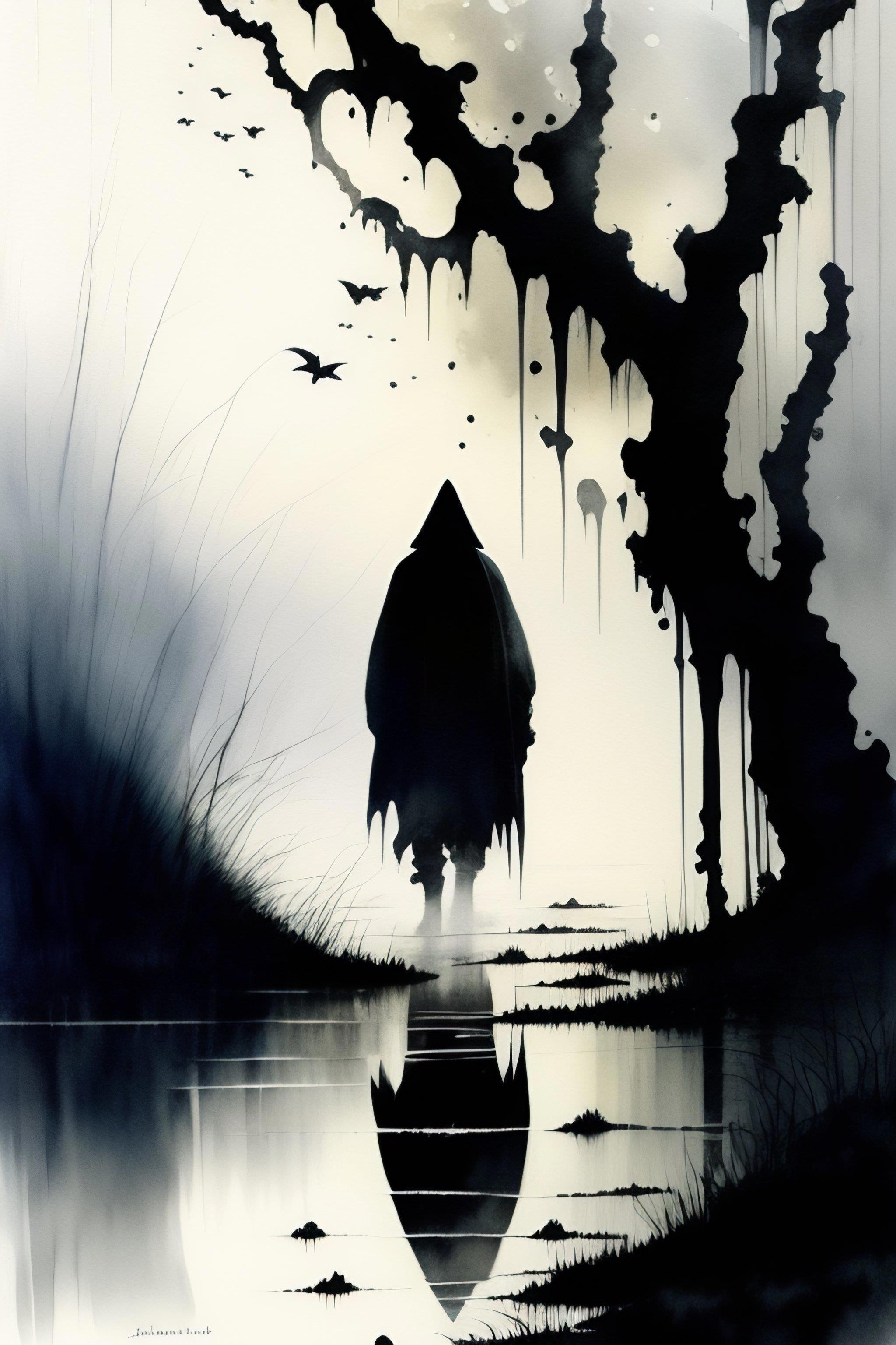 Белый конь чуть ступает усталой ногой, Где бескрайная зыбь залегла. Мне болотная схима - желанный покой, Будь ночлегом, зеленая мгла!
