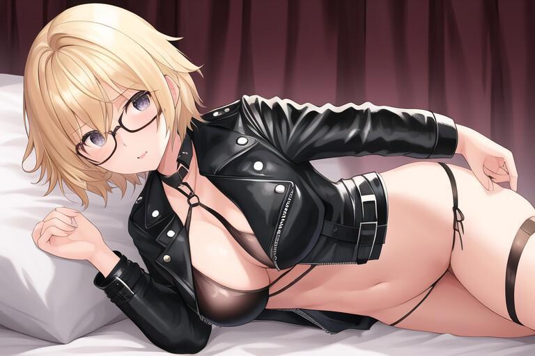 Чисто от дури дал запрос типа "девушка в кожаной куртке, лежащая на кровати" (перед этим пытался генерить персонажей из "Что оставит ветер" - там вообще фигня получилась).