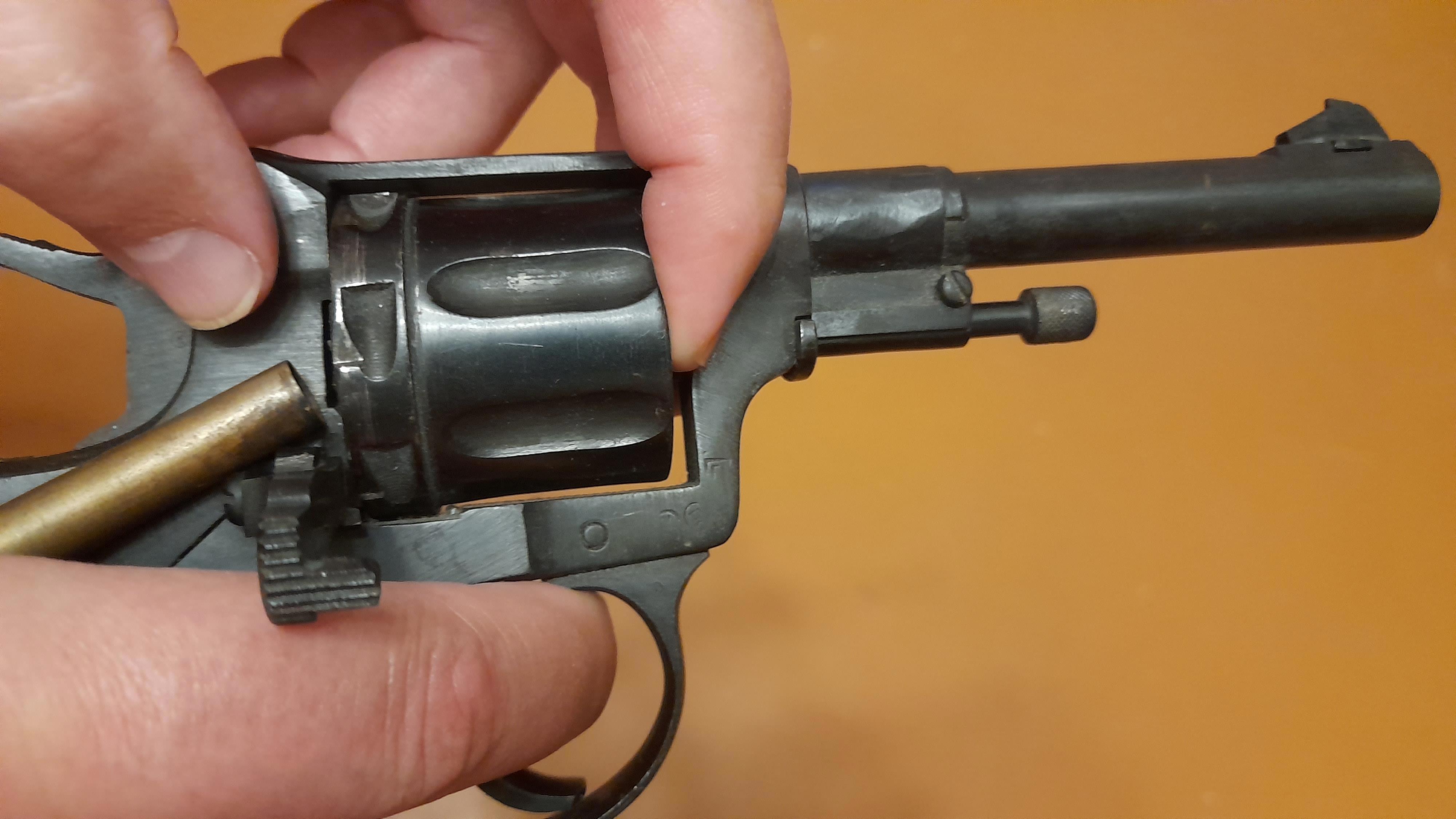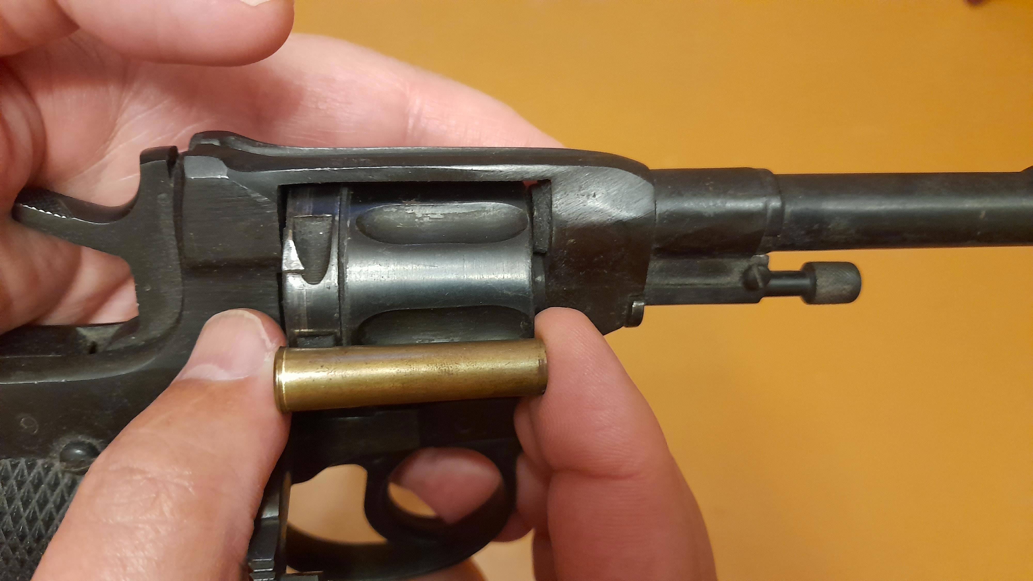 И это у грамотного стрелка оказывается преимуществом - у него все время 7 зарядов. Постоянно. И в этом как раз гениальность системы по сравнению с остальными револьверами у которых короткую гильзу надо именно вышибать шомполом. И даже из чистого и смазанного барабана. Потому как иначе никак.