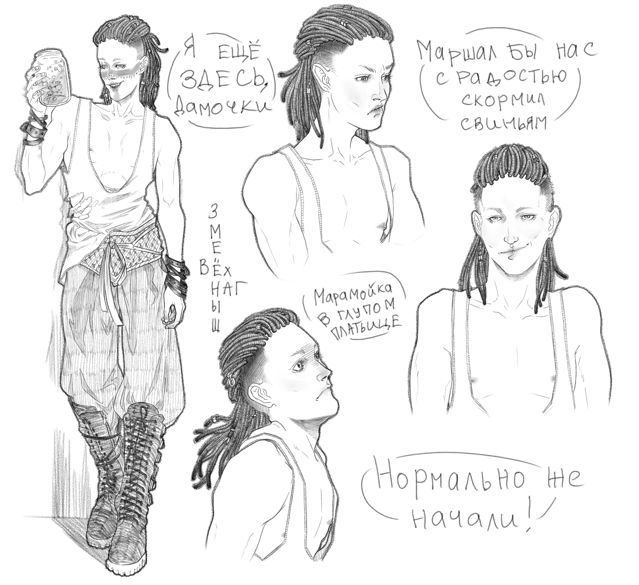 Пока я работаю с ними в тексте, я вижу их как набор качеств и деталей, как концепцию, как что угодно, но не цельный образ. Картинка помогает мне всё завершить.
